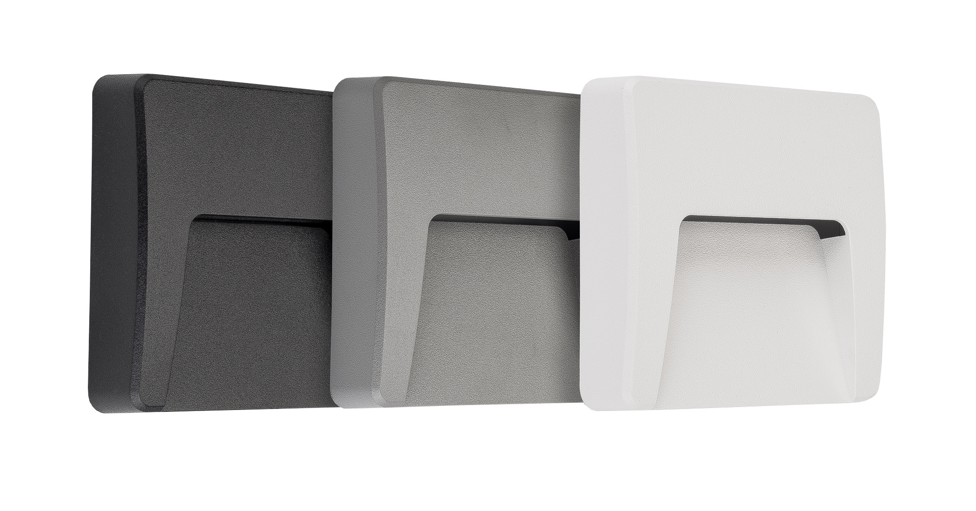Aplique de pared compacto IP65 suministrado en 3 colores 2,8W cuadrado