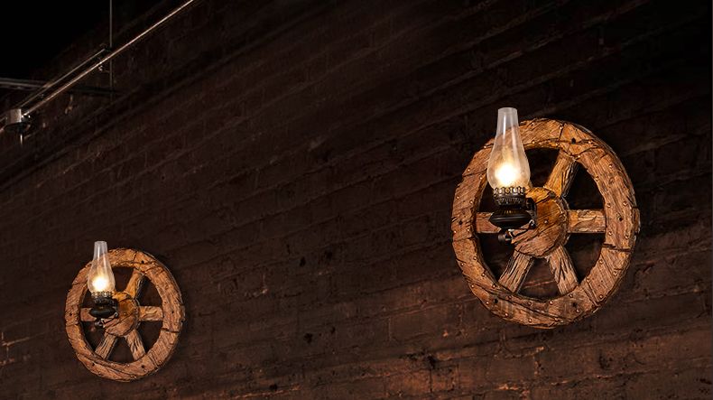 Aplique de pared industrial rueda madera antorcha 580mm Ø