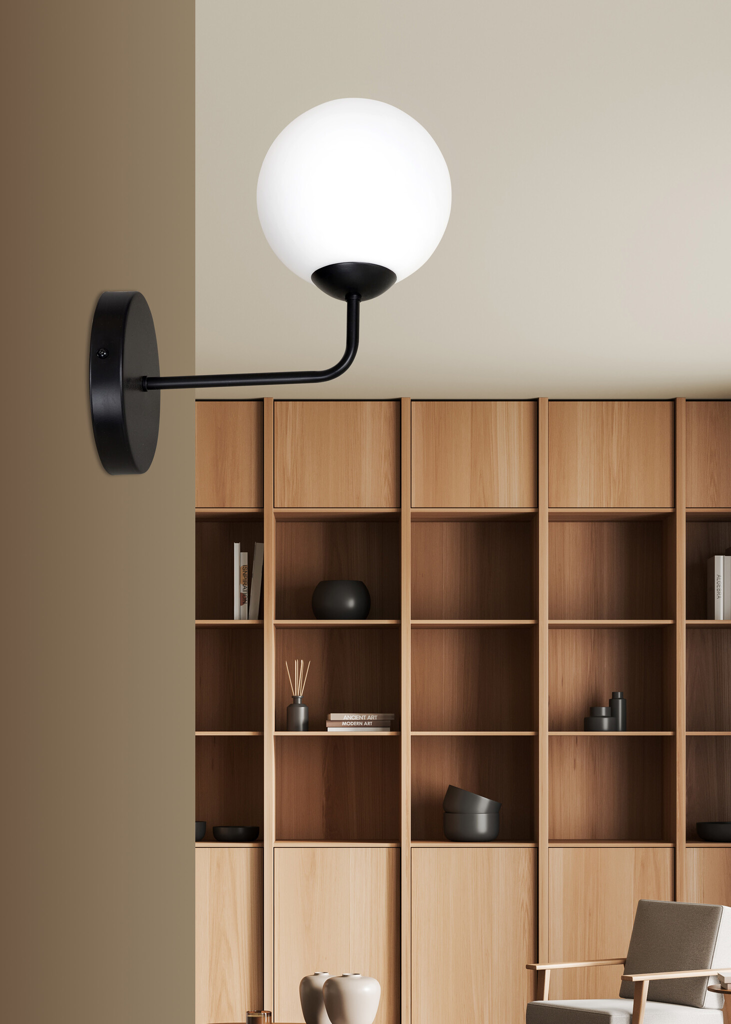 Especificaciones Lámpara de pared simple Lahti negro con vidrio blanco 1x E14: