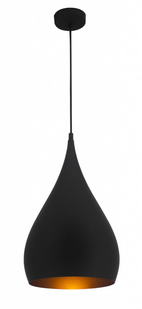 Esta elegante lámpara colgante está disponible en negro, cobre o marrón café. El interior de la versión negra o marrón café es dorado/ámbar.