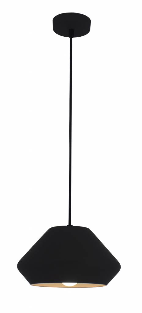 ¡Esta moderna lámpara colgante se roba el espectáculo! Su hermosa forma geométrica y cónica lo convierte en un verdadero atractivo. Cabe perfectamente encima de la mesa del comedor, pero también queda bien en el dormitorio, en el recibidor o en la oficina. El diámetro es de 24 cm y la altura total hasta la parte inferior de la pantalla es de 1377 mm.