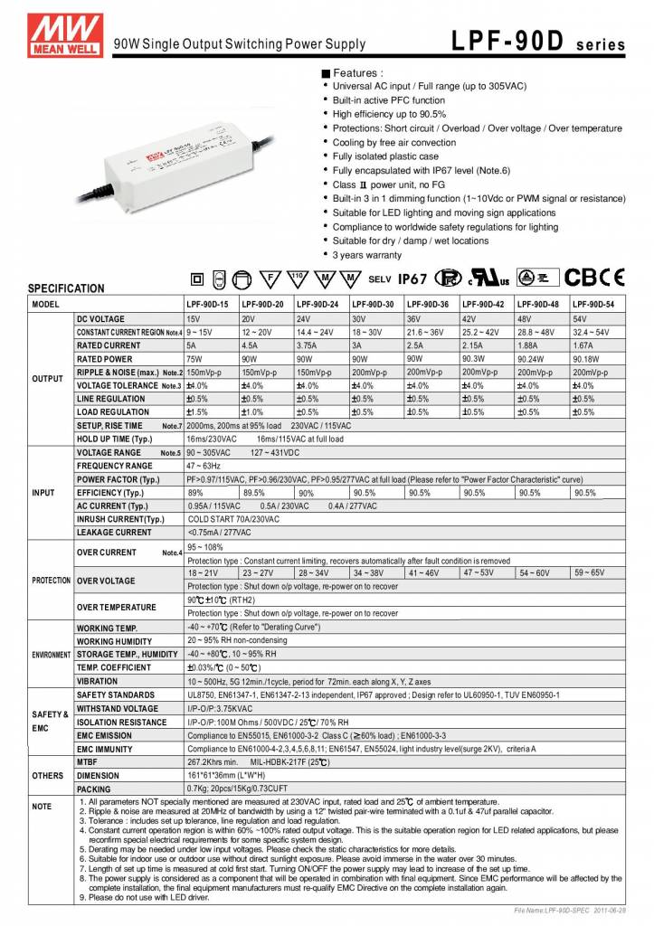 ¡Los controladores Meanwell pertenecen a los mejores controladores LED del mercado! Este controlador LED Meanwell es regulable y apto para 90W.