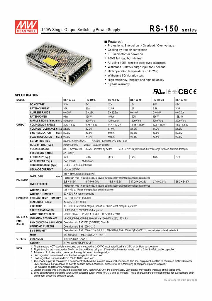 Driver LED Meanwell con potencia hasta 150W. No impermeable.