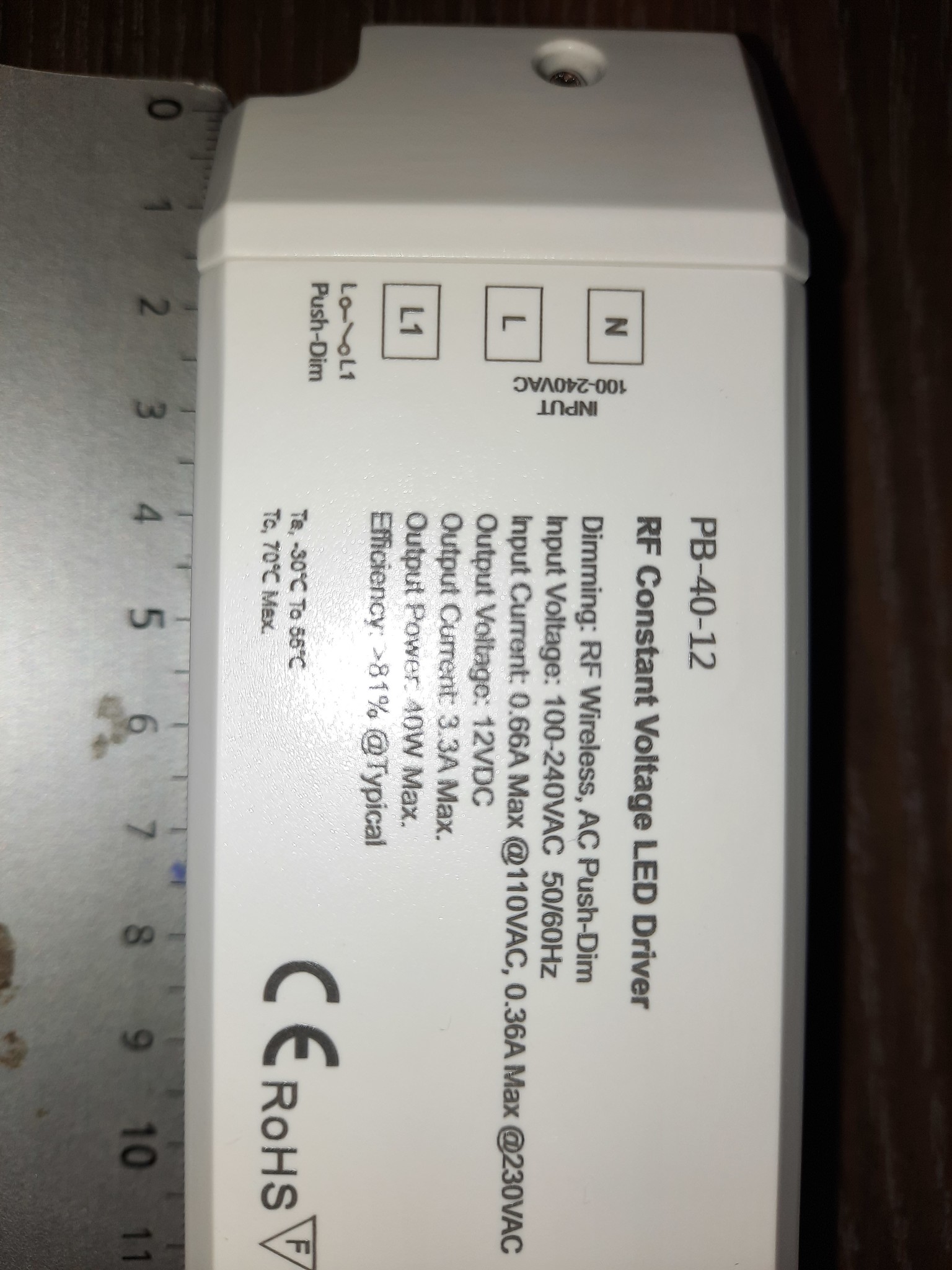Especificaciones conductor regulable 12Volt DC a 40W habitación húmeda posiblemente con mando a distancia:
