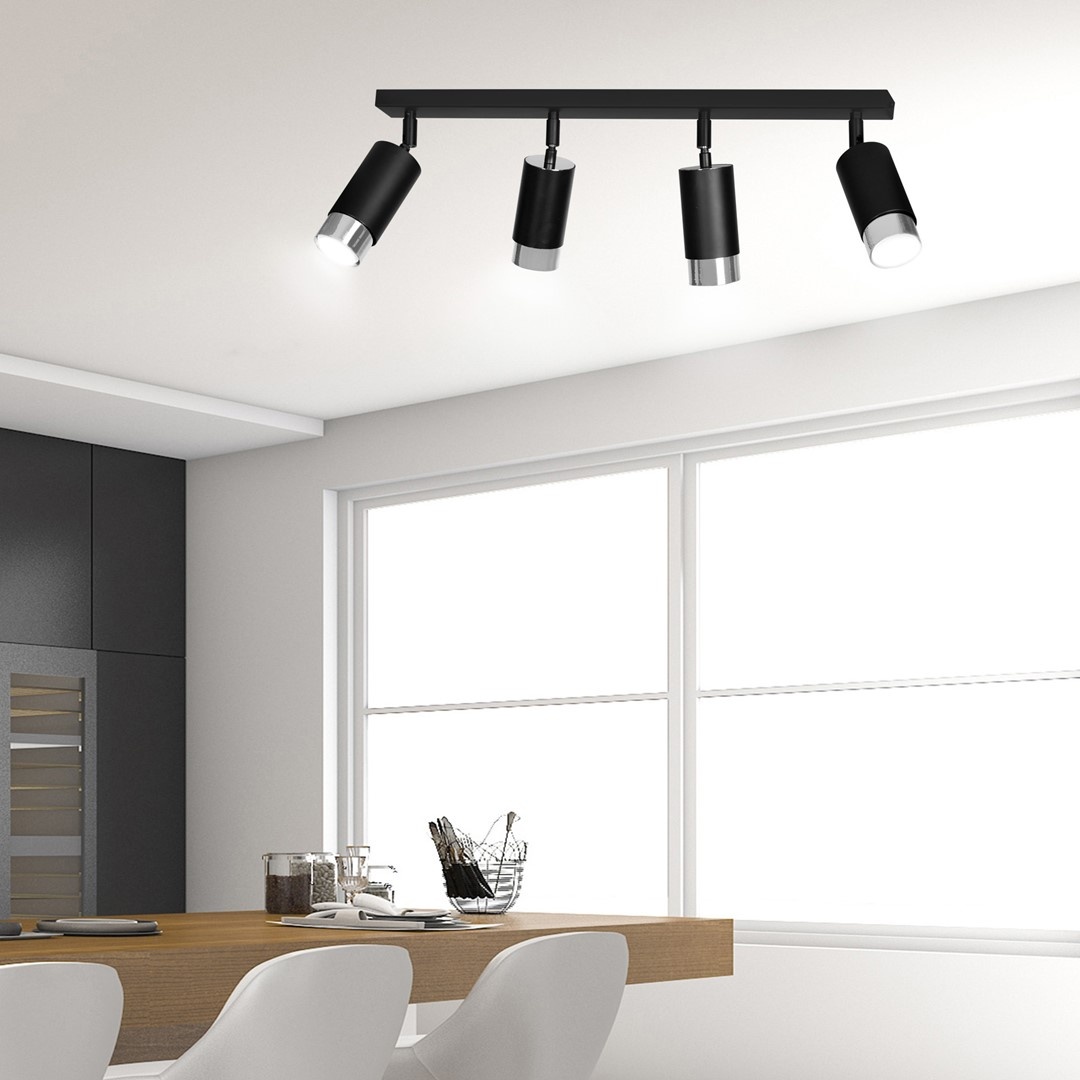La lámpara de techo HIRO 4 de Emibig es la elección perfecta para interiores modernos. Con su elegante acabado en negro y cromo, se integra perfectamente en cualquier decoración.