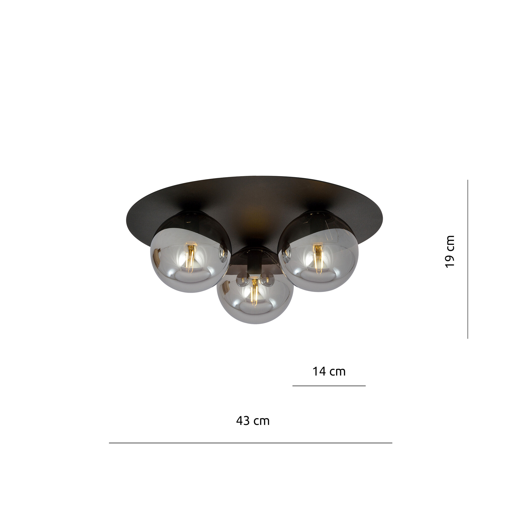 Esbjerg lámpara de techo triple negra con 3 bombillas ahumadas E14