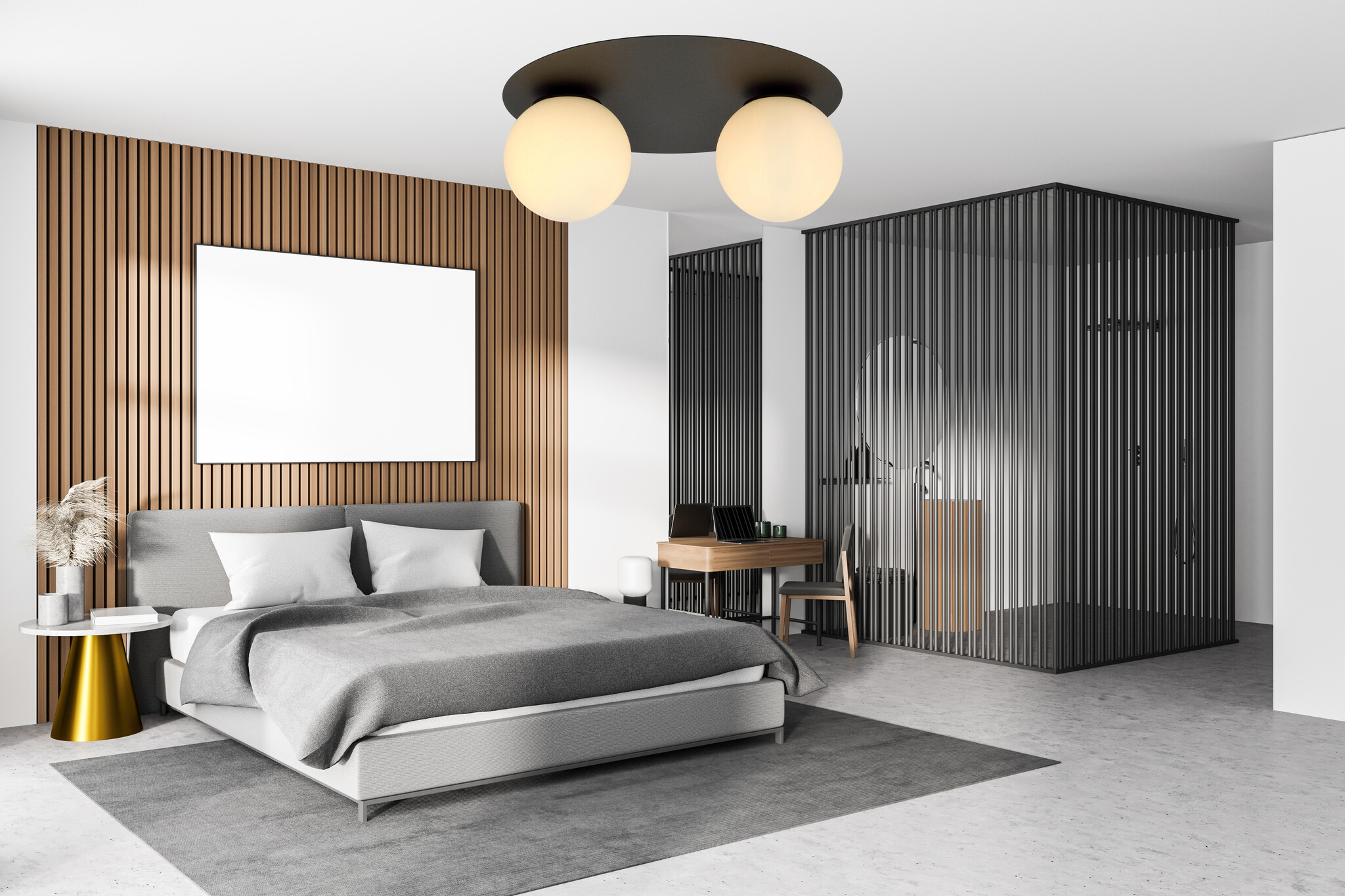 Esbjerg plafón doble negro con 2 bombillas de cristal opal blanco E14