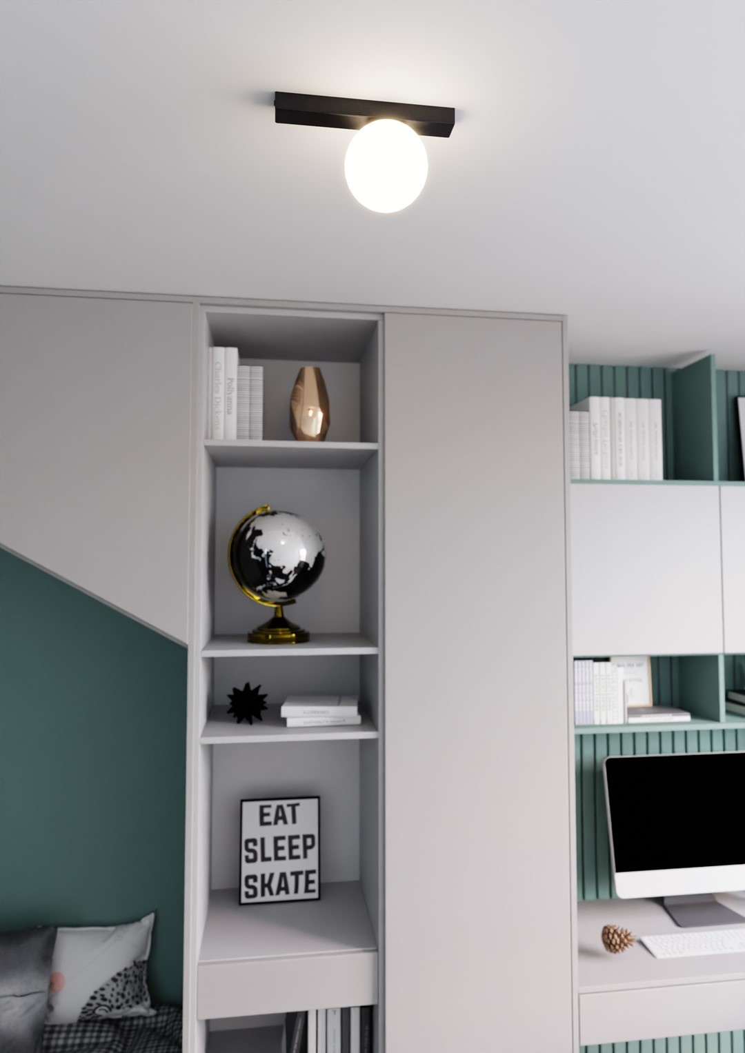 Emibig FIT 1 Negro/Opal - Lámpara de techo minimalista para espacios elegantes