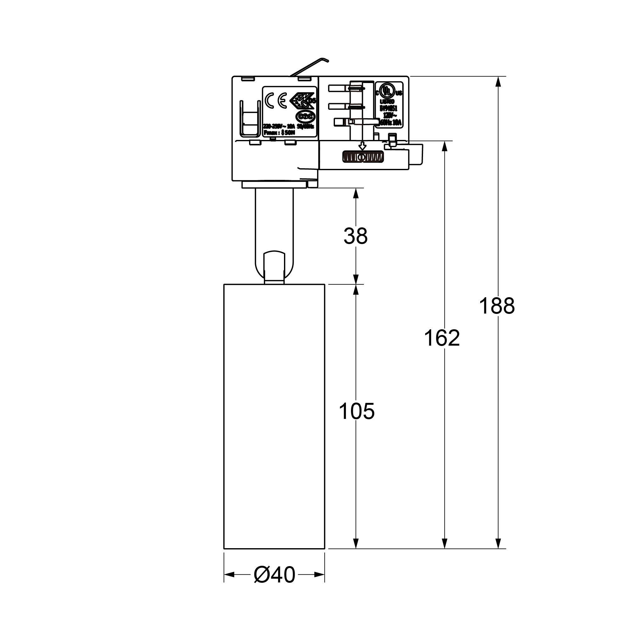 Especificaciones Foco cilíndrico regulable Fixo 6W para carril, empotrado o de superficie Ø 40 mm altura 105 mm: