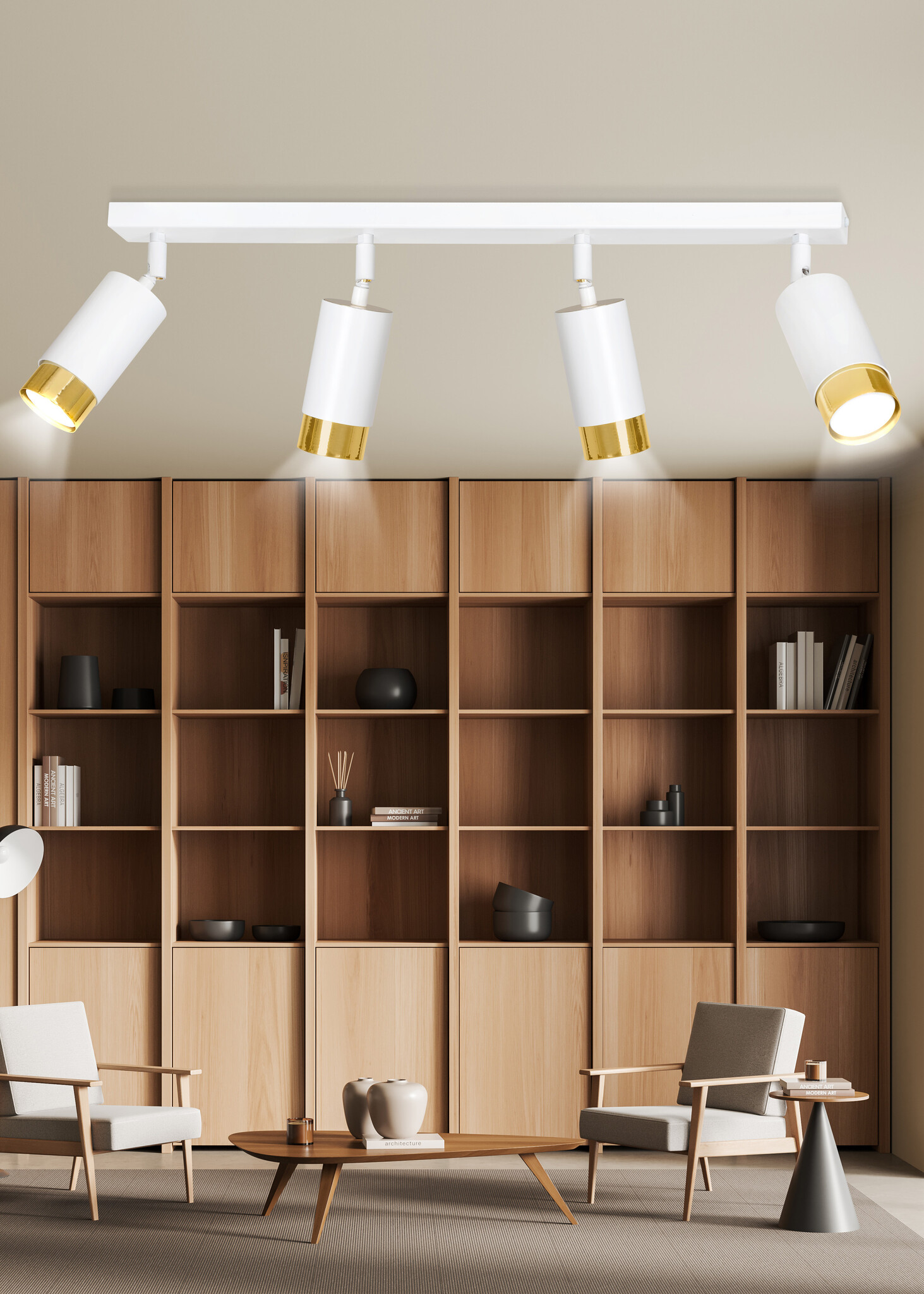 Foco de techo Boras 4L blanco acabado dorado orientable GU10