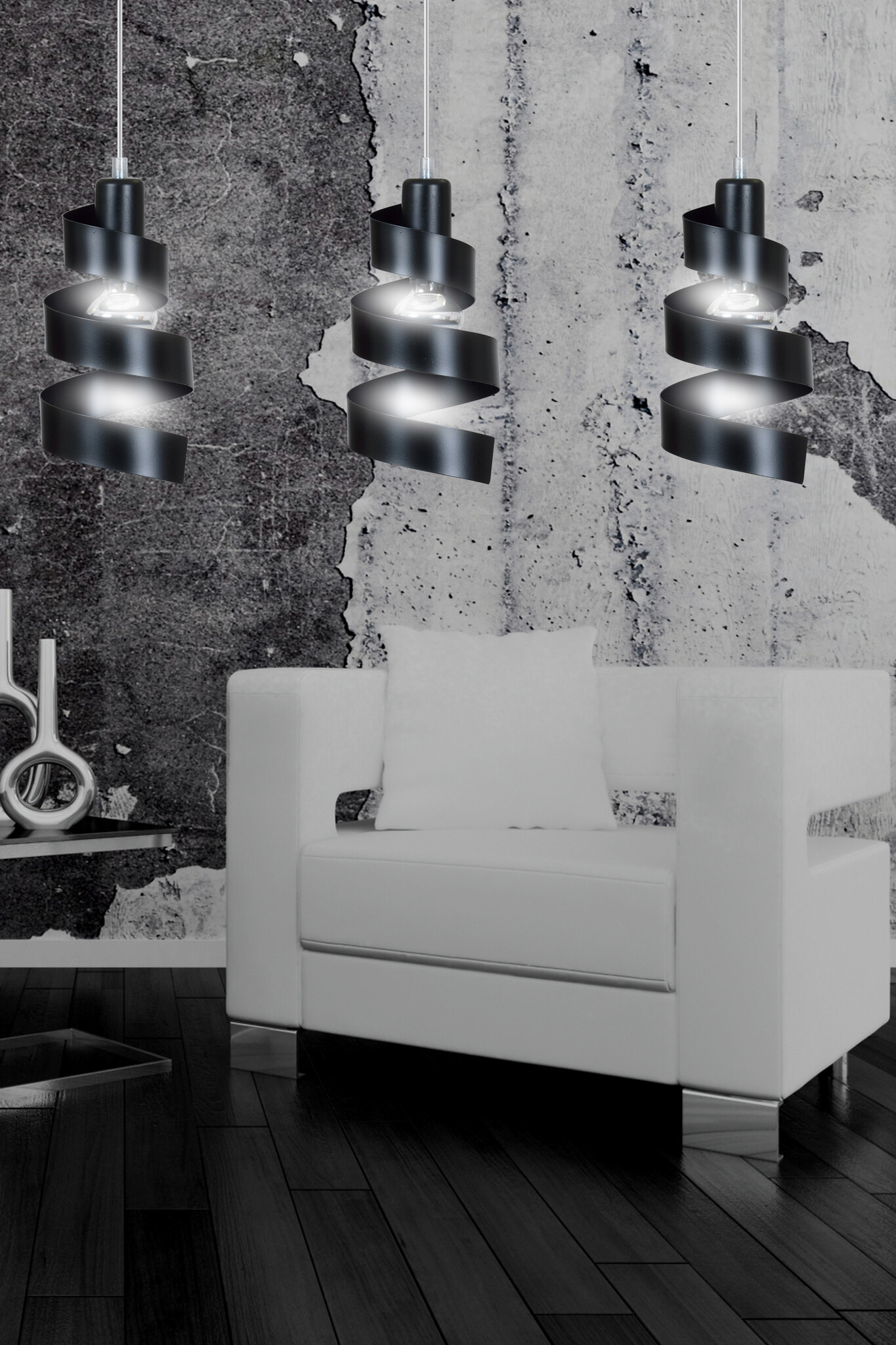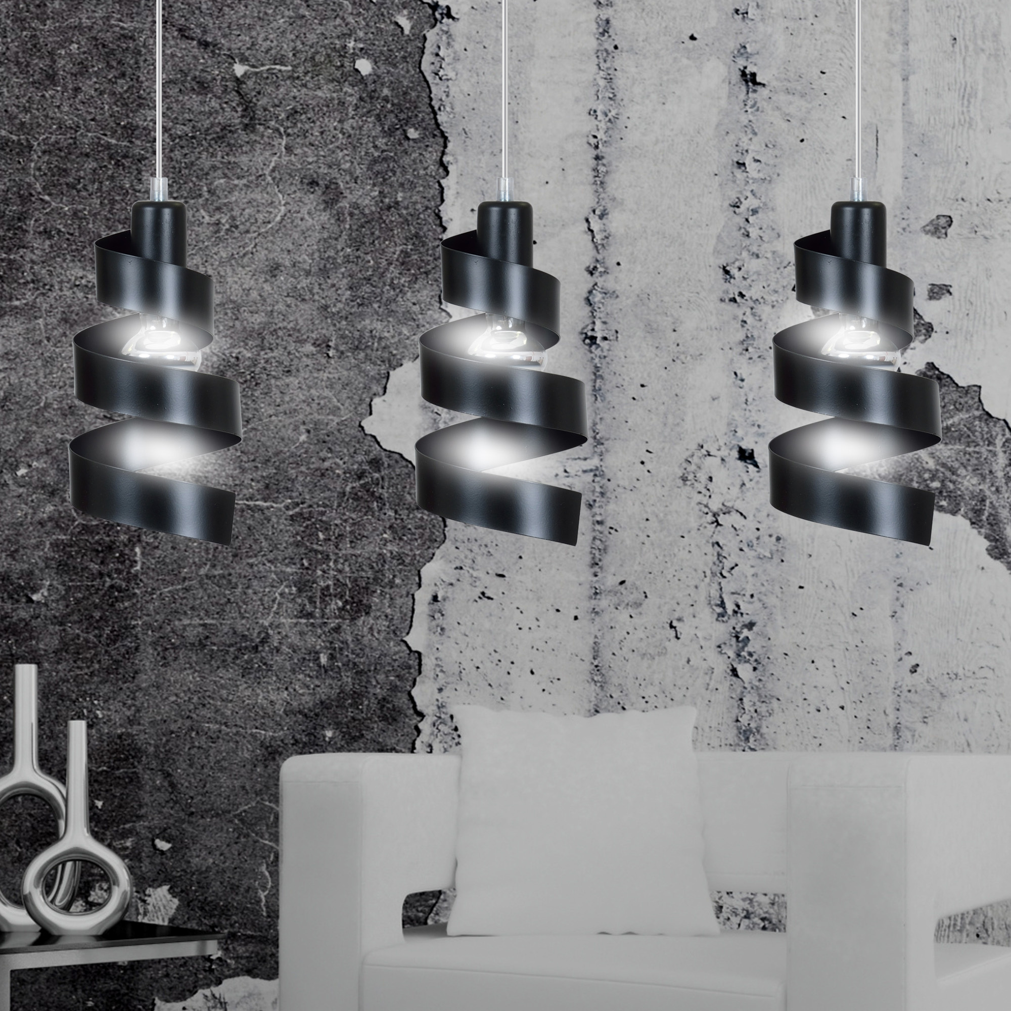Helsingborg 3L lámpara colgante espiral metal negro 3x E27
