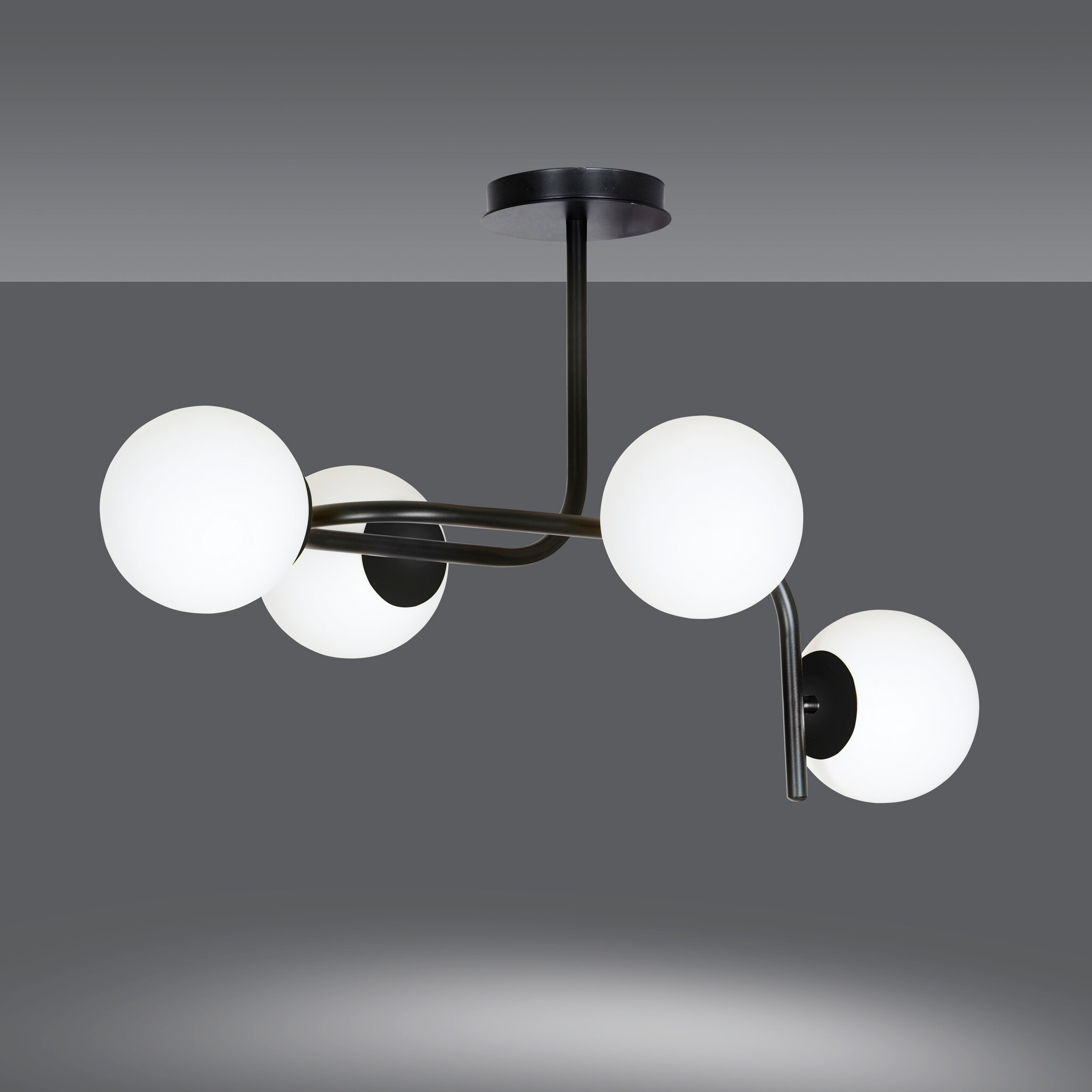 Helsingfors gran lámpara de techo negra con brazos curvos y 4x E14 en bombilla blanca
