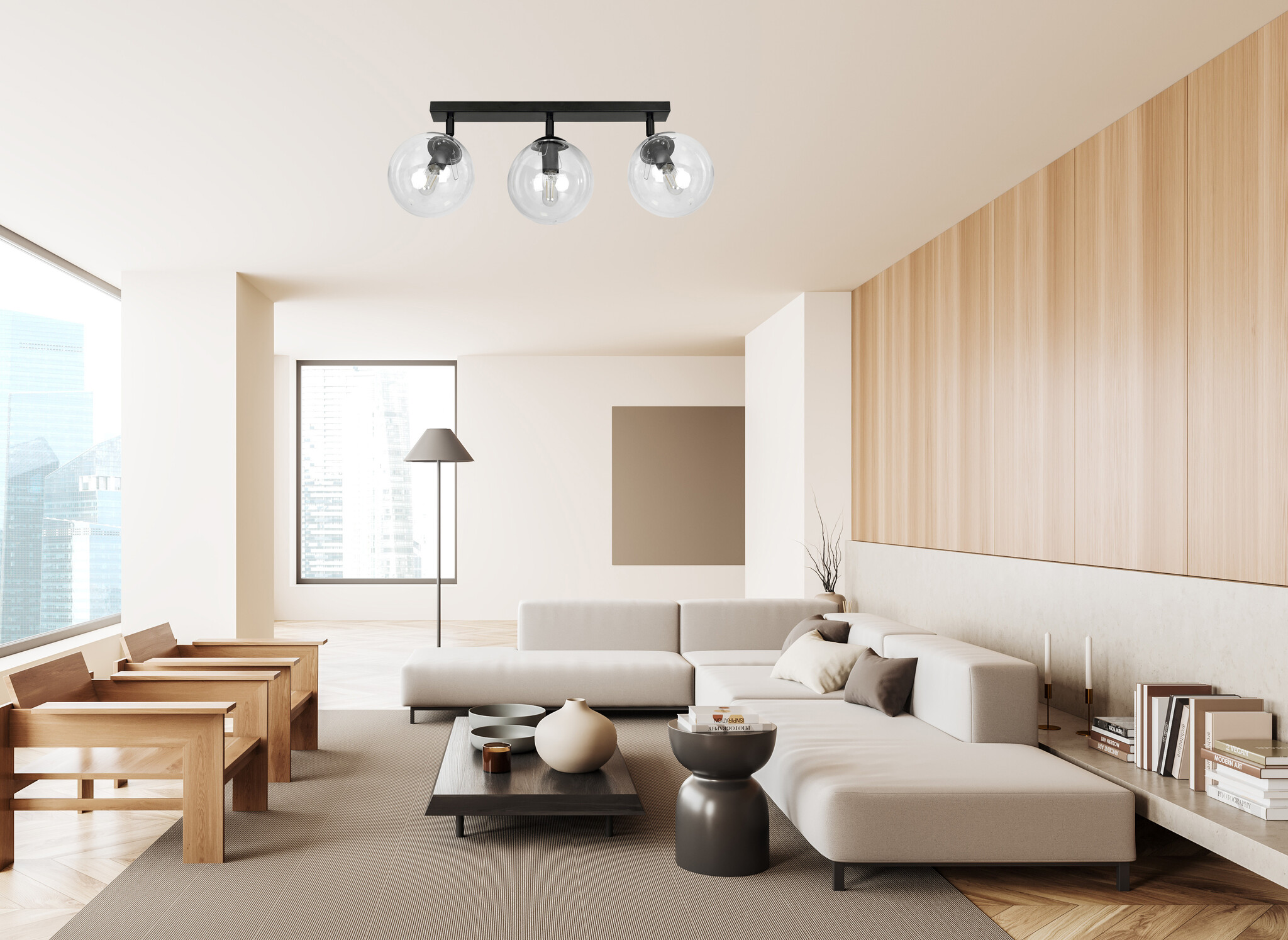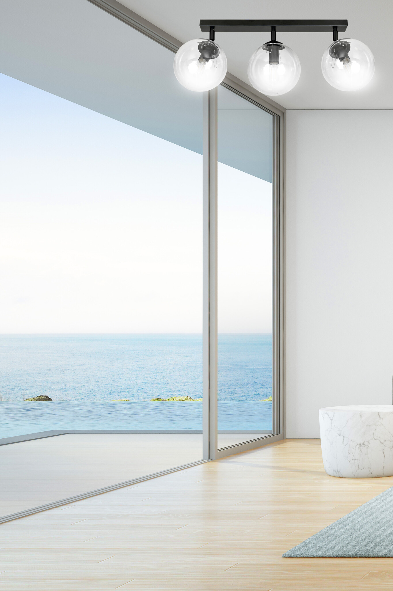 Imatra 3L negro con bombillas de cristal transparente 3x E14