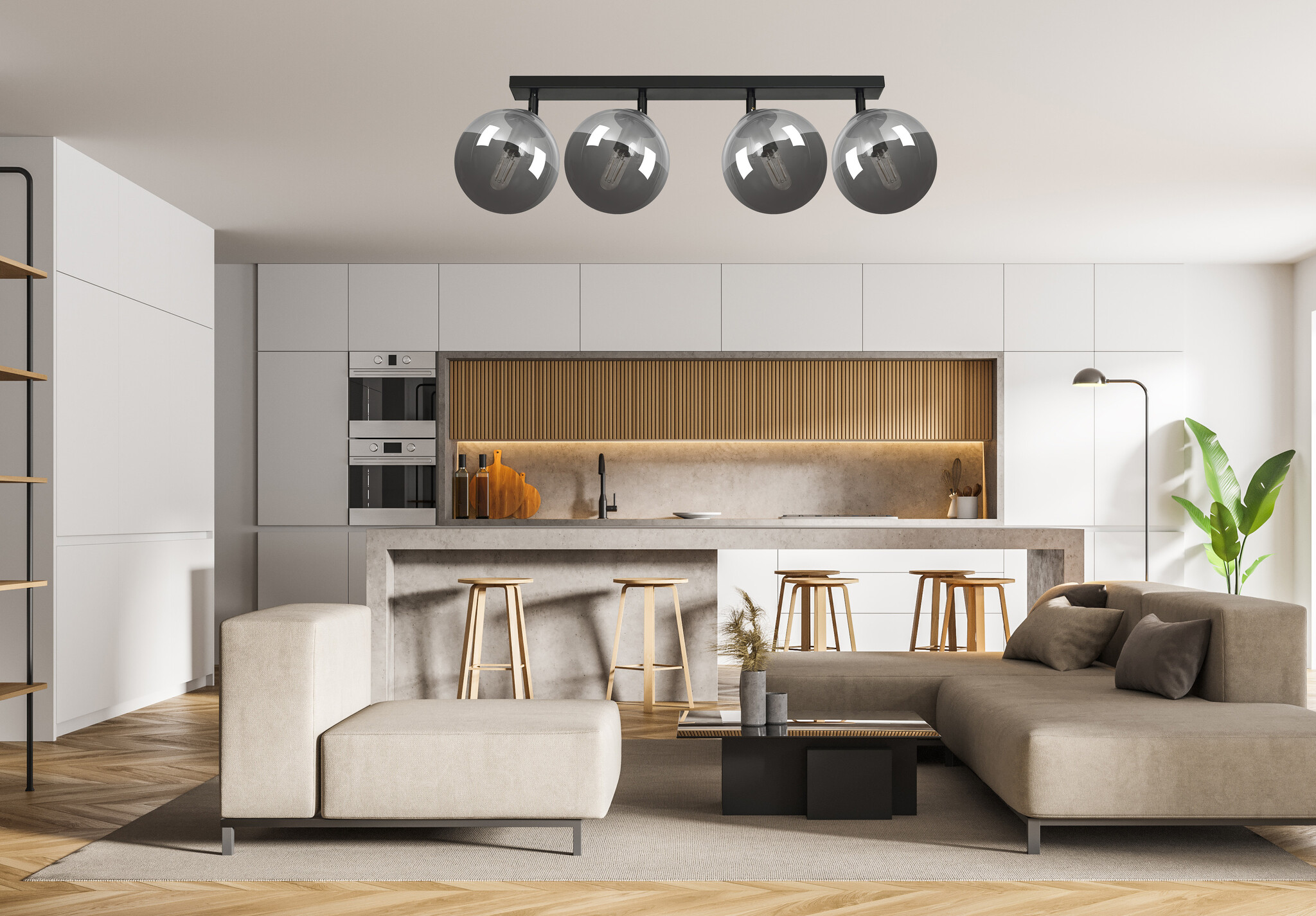 Imatra negro con bombillas de cristal ahumado 4x E14