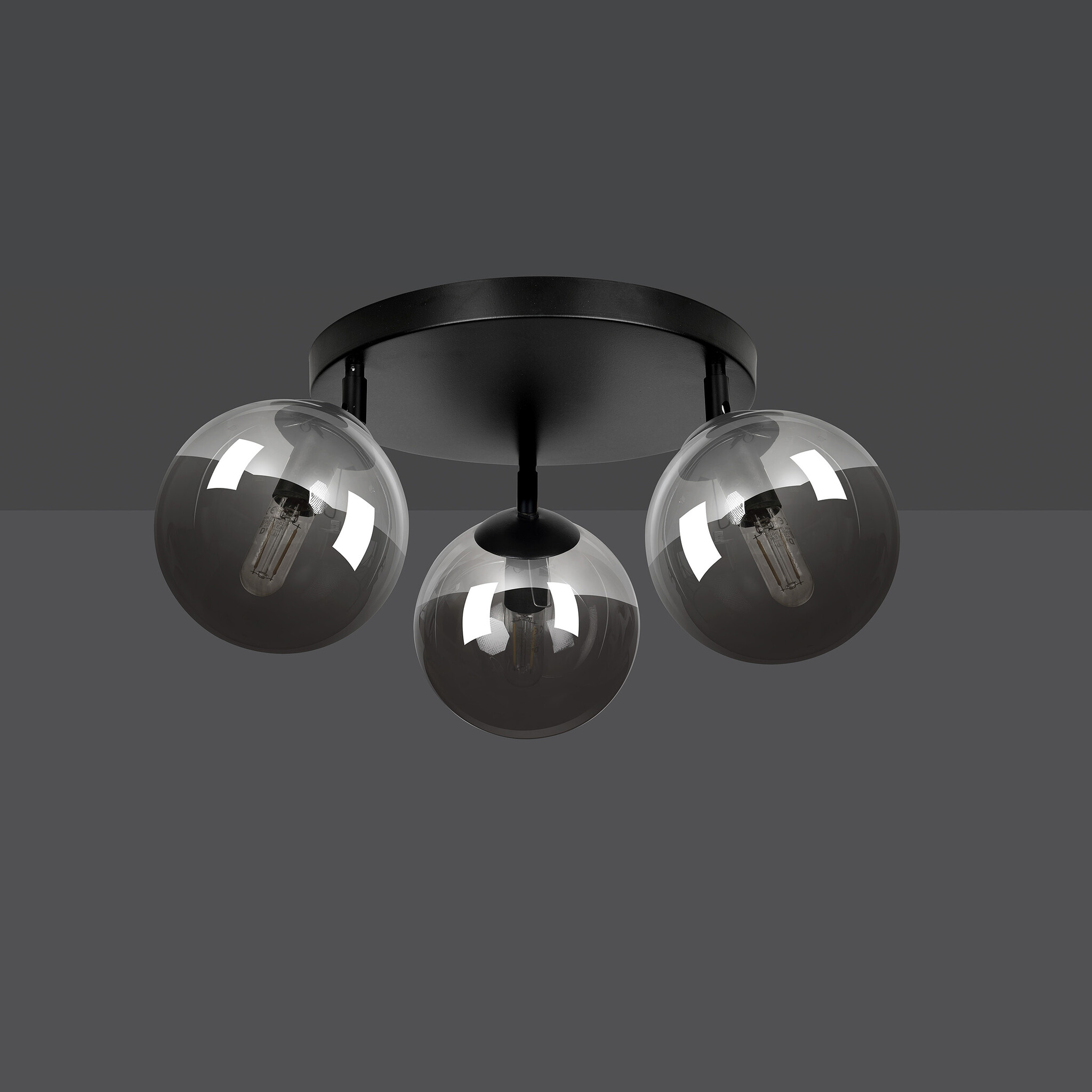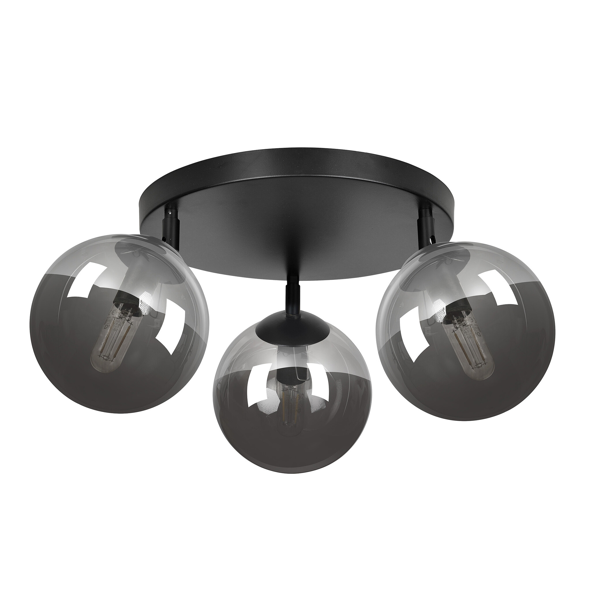 Imatra redonda 3L negro con bombillas cristal ahumado 3x E14