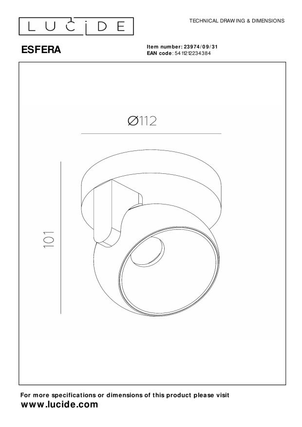 Especificaciones Lucide ESFERA - Foco de techo - LED Dim. - 1x11W 2700K - Blanco: