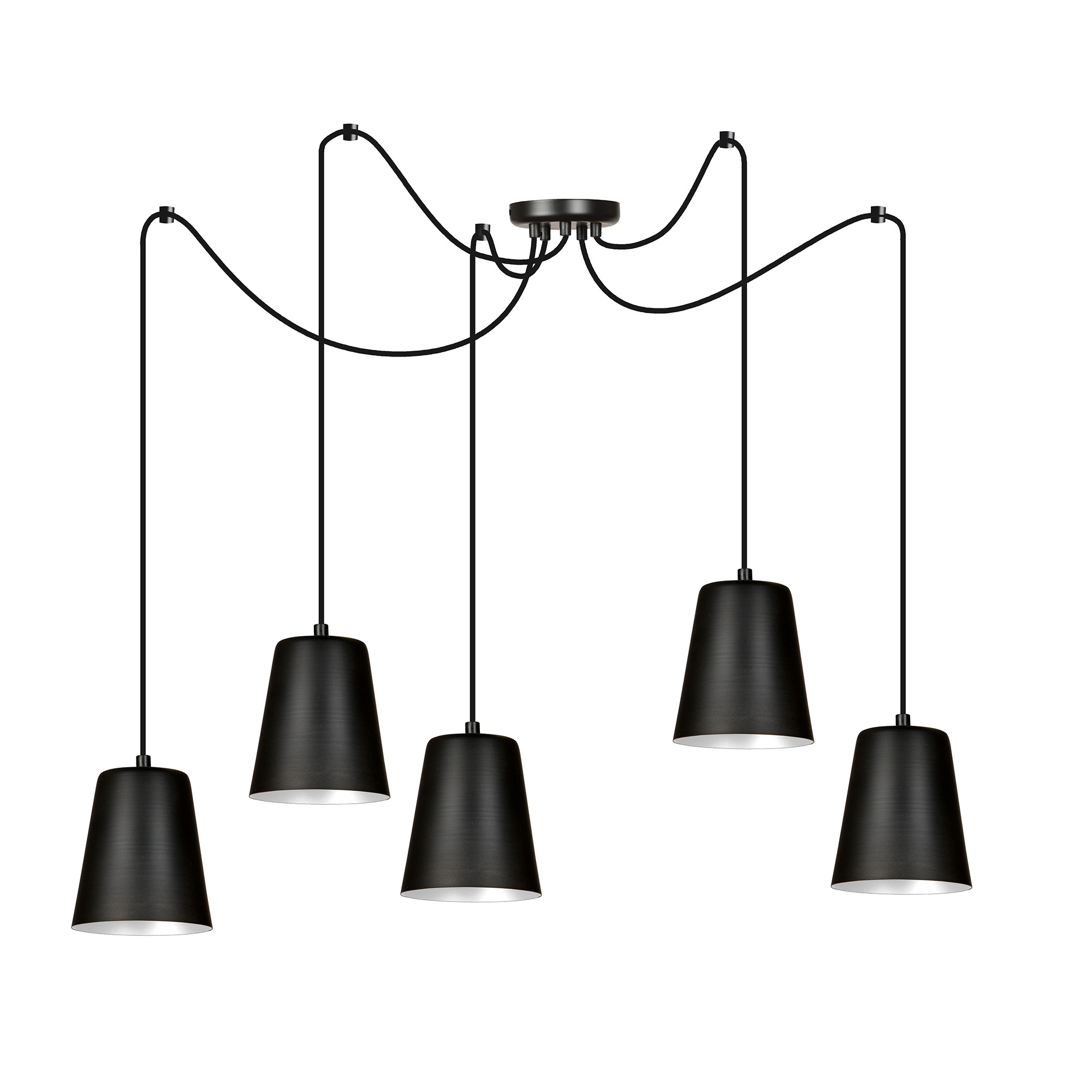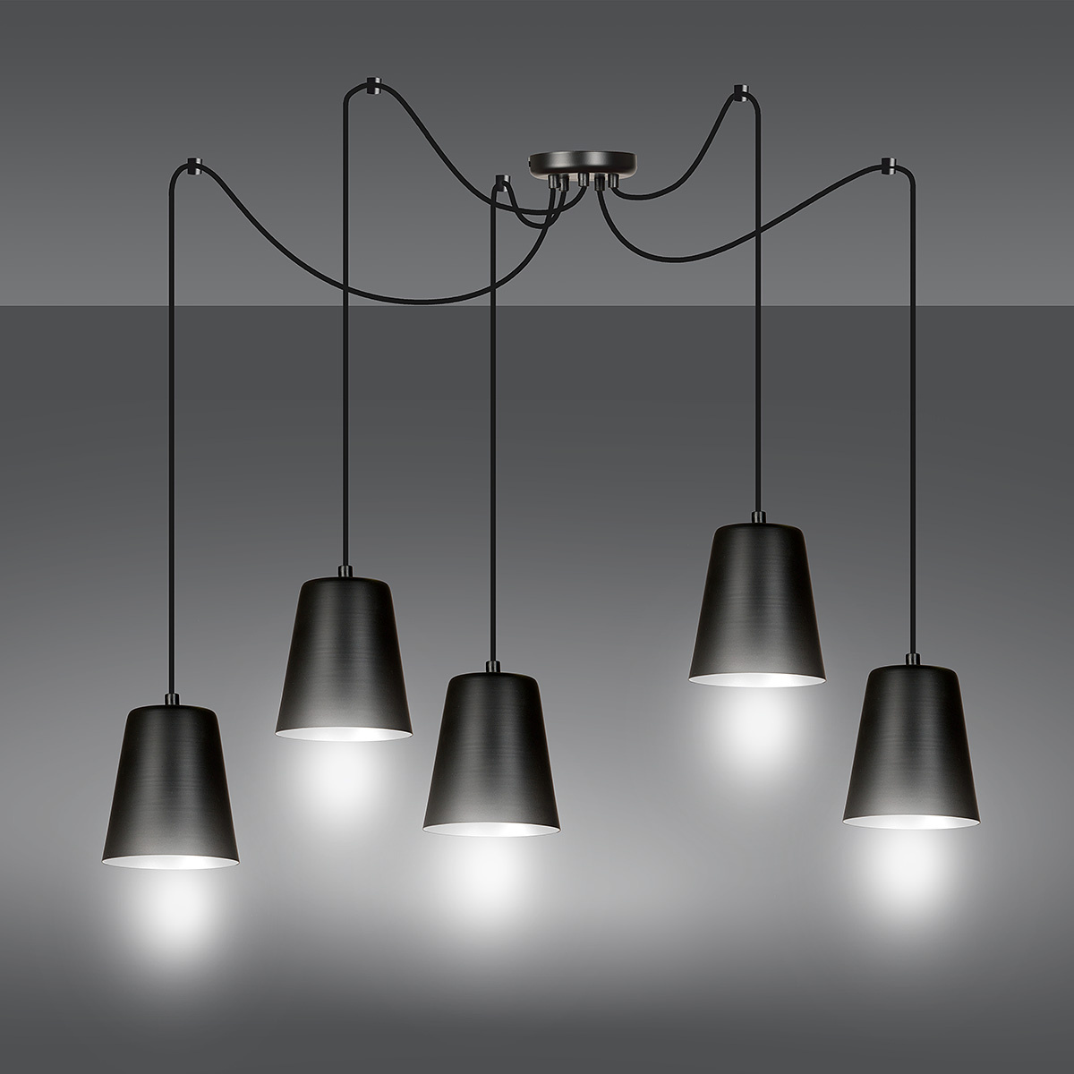 Jonkoping 5L negro con lámpara colgante blanca 5x E27
