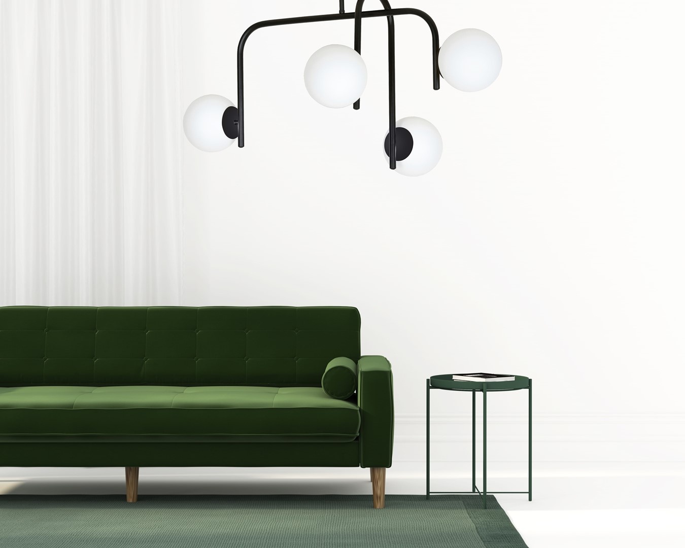 La lámpara de techo KALF 4B BLACK es la elección perfecta para quienes aprecian el diseño escandinavo. Con su elegante acabado negro y pantalla blanca, crea una atmósfera luminosa y agradable en cualquier habitación.