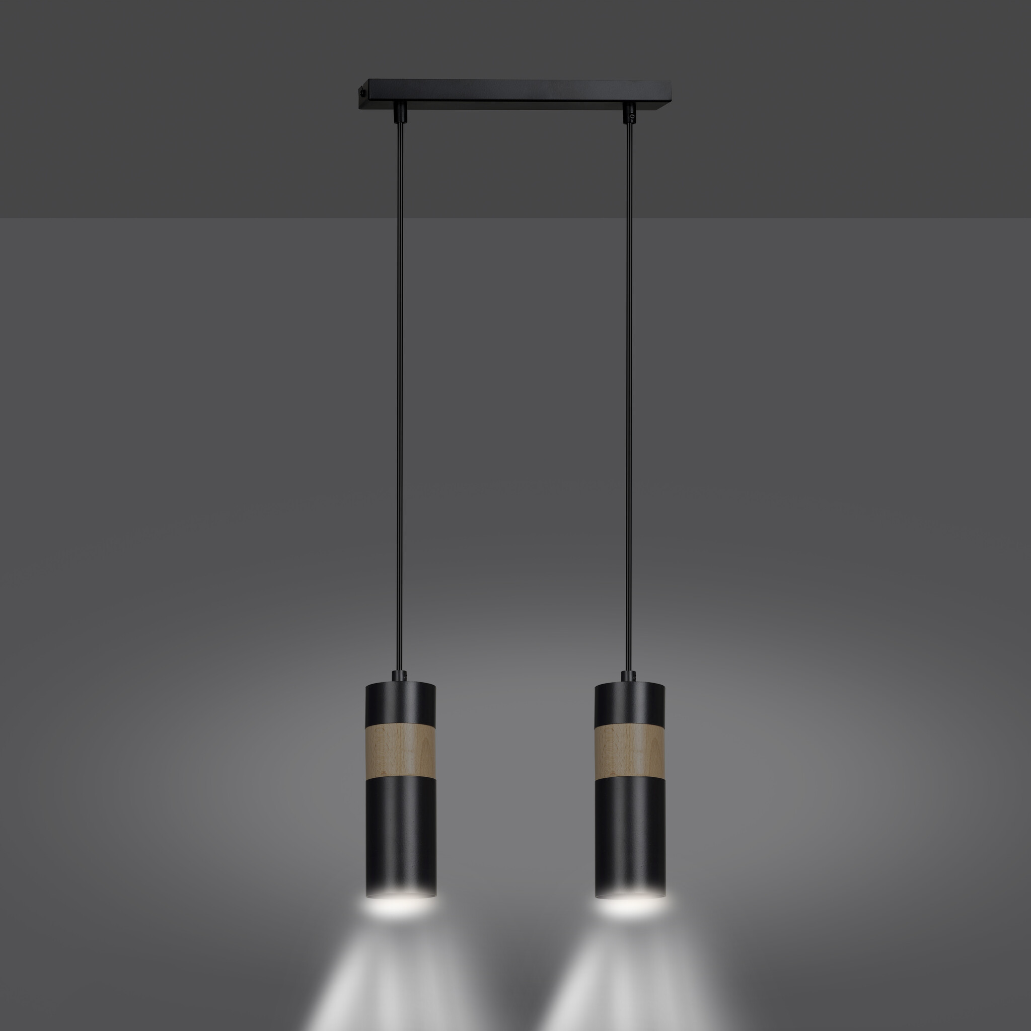 Kerava lámpara colgante doble negra y madera 2x GU10