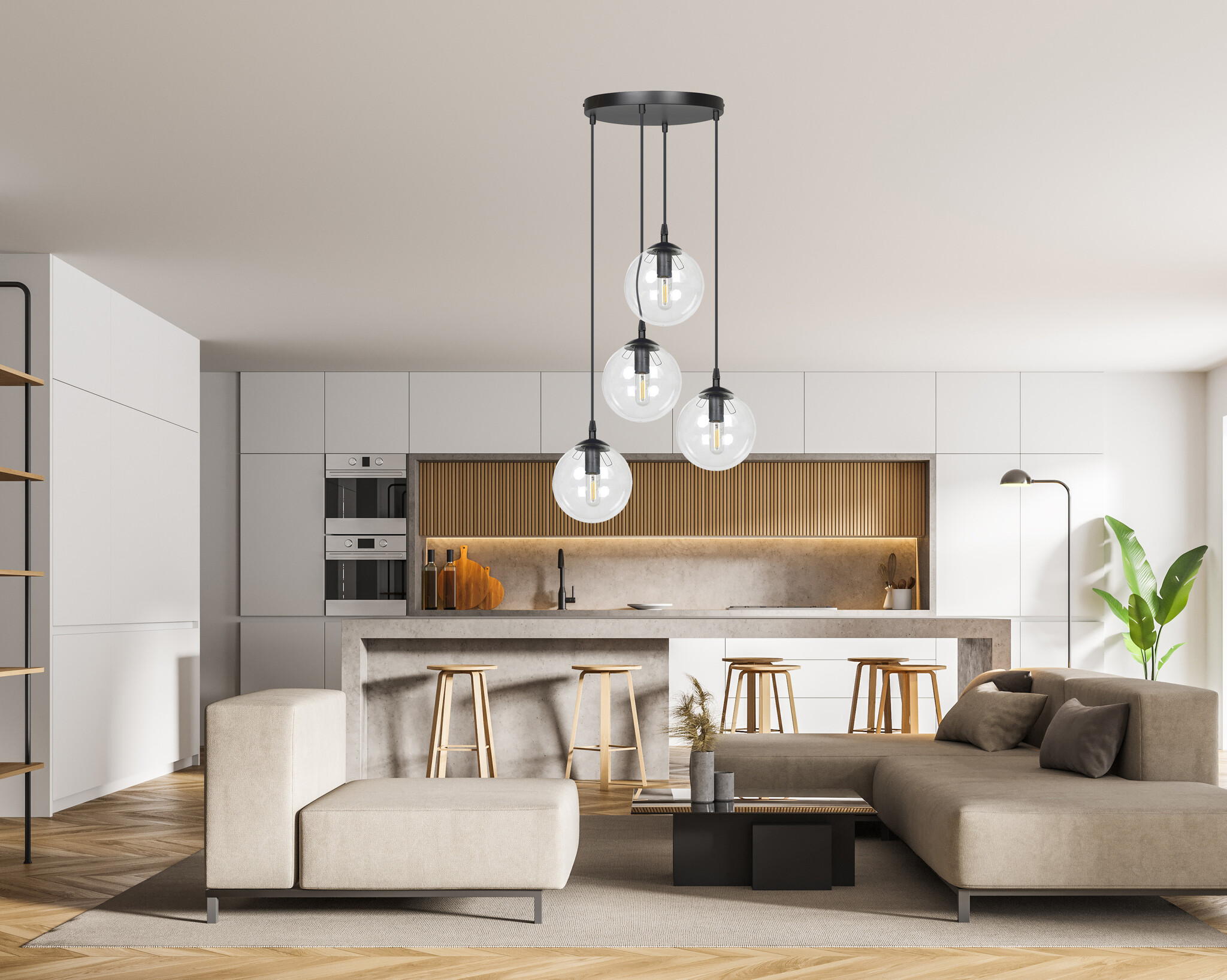 Especificaciones Lámpara colgante Kerteminde 4 esferas negras 14 cm con cristal transparente: