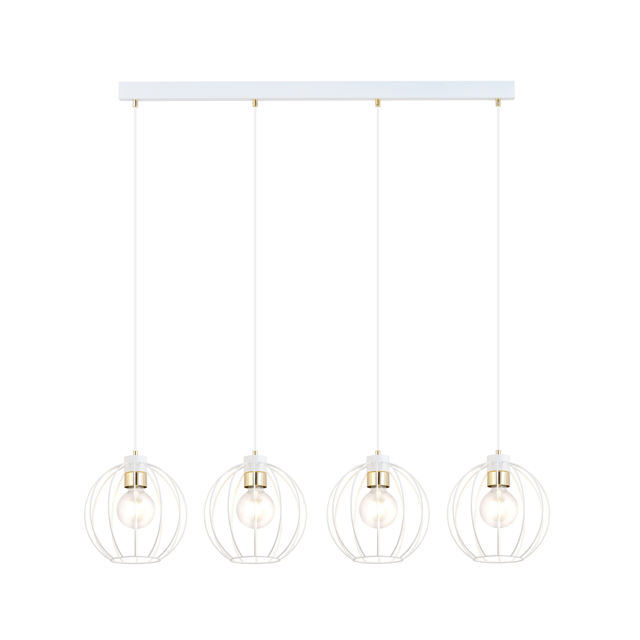 Especificaciones lámpara colgante 4 bolas metal blanco E27: