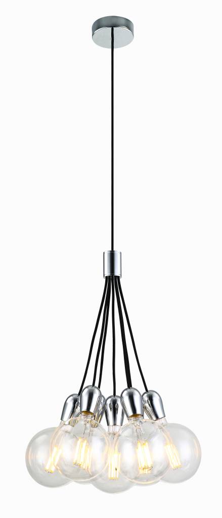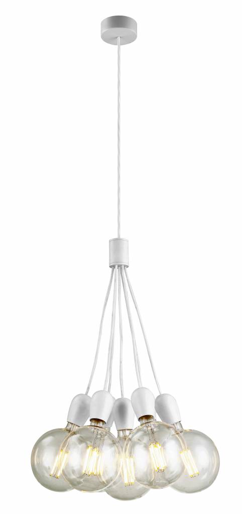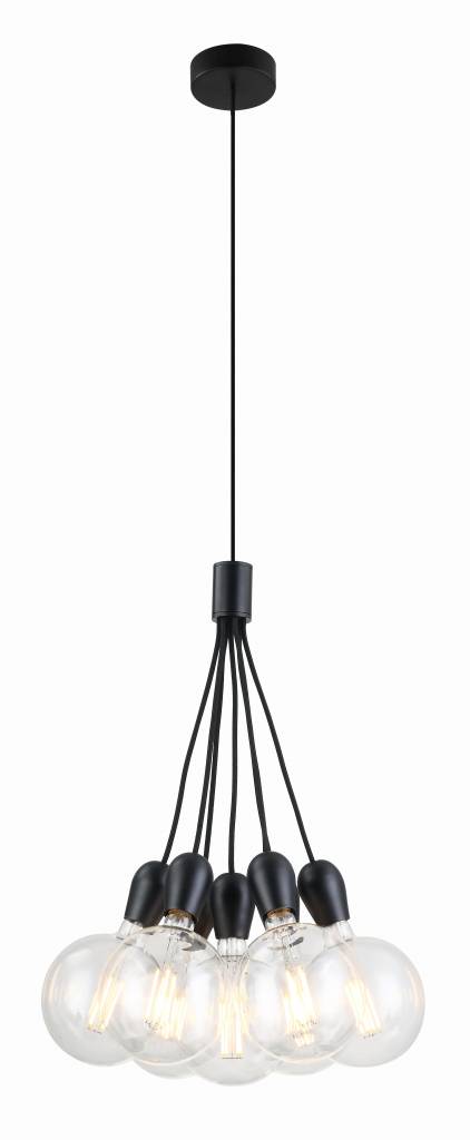 ¡Divertido y práctico! Eso es exactamente lo que es esta lámpara colgante 7. Reúne 7 bases de lámparas en un paquete y crea un efecto divertido. Las 7 bases de lámpara son E27 en las que se puede girar una lámpara LED. Utilice para ello una lámpara de incandescencia LED grande (consulte nuestros productos relacionados). Esto crea el mejor efecto.