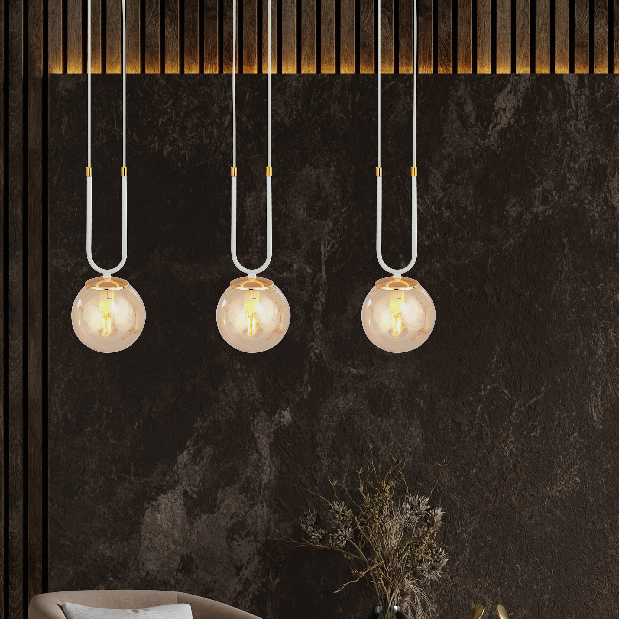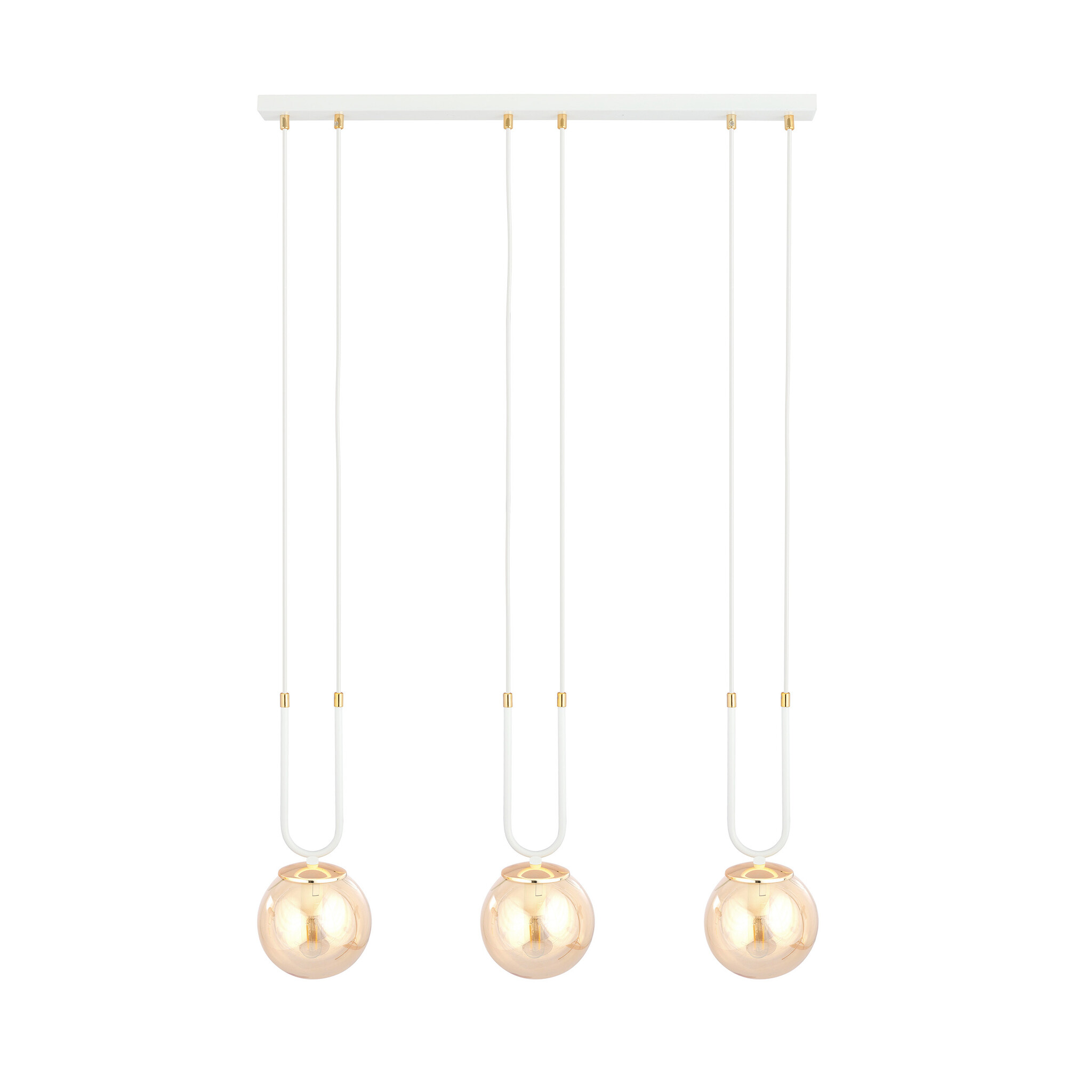 Lámpara colgante Aarhus blanca de 3 lámparas con cristal ámbar E14 70 cm de ancho