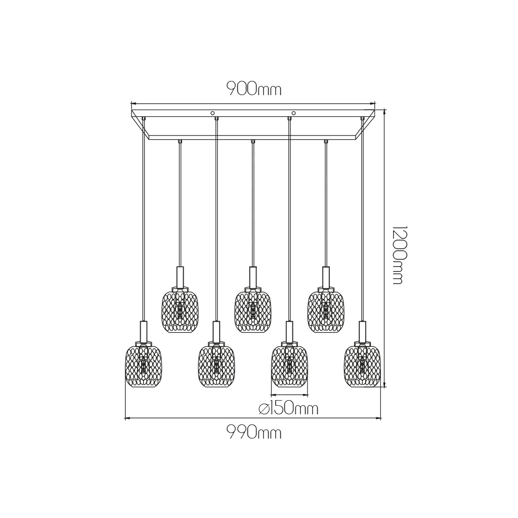 Especificaciones Lámpara colgante Astrid Beam 7xE27 Negro + 7x cristal gris ceniza Ø150mm: