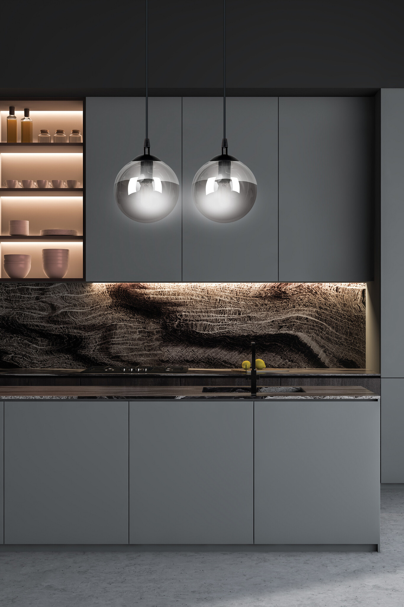 Lámpara colgante Billund doble esfera negra 14 cm cristal ahumado E14