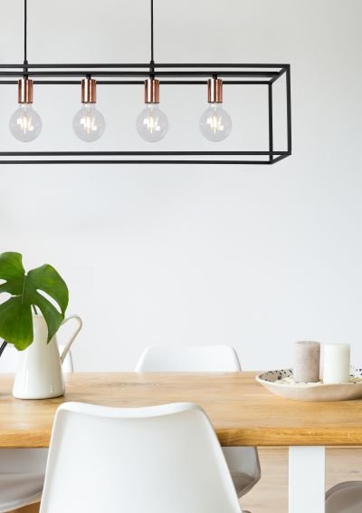 Esta lámpara colgante rural tiene 5 puntos de luz. Puede instalar lámparas LED de forma segura aquí. Recomendamos instalar aquí lámparas de incandescencia LED alargadas . Estos garantizan el mejor efecto.