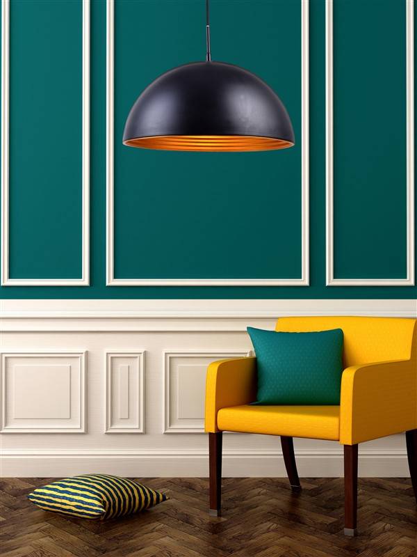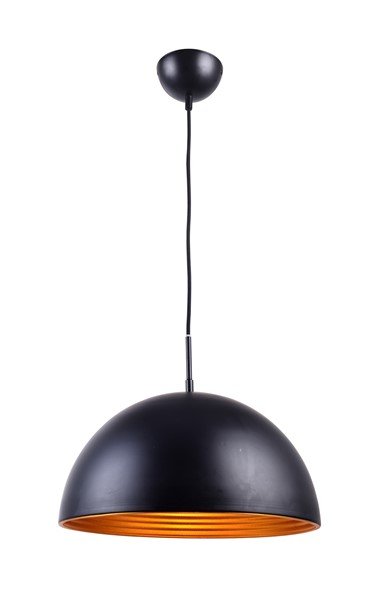 ¡Esta lámpara colgante de diseño redonda negro-oro 1xE27 de 400 mm de diámetro tiene forma de cúpula y es la lámpara perfecta para tu interior moderno!El exterior curvo negro en combinación con el interior dorado hace de esta una lámpara única.