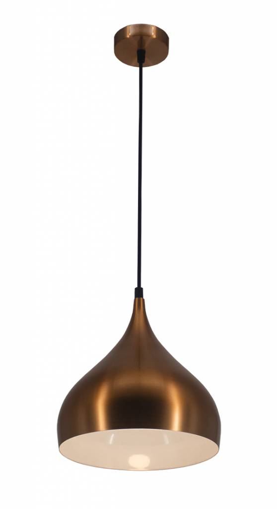 Esta lámpara colgante está disponible en negro, cobre o marrón café. Para hacerlo cálido y acogedor, el interior de la versión negra o marrón café es dorado/ámbar. En el interior se encuentra un casquillo de lámpara E27 en el que se puede encender una lámpara LED.