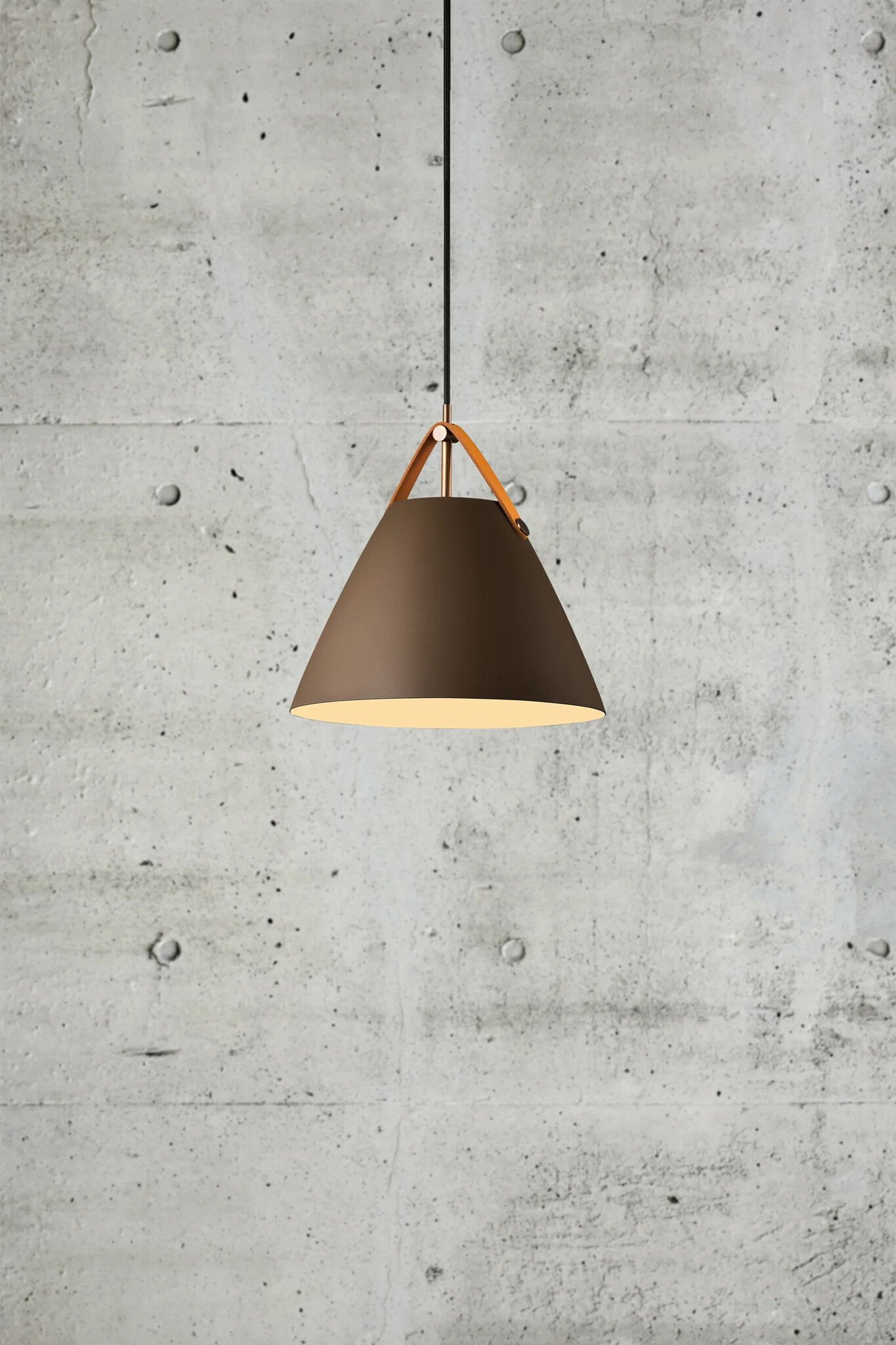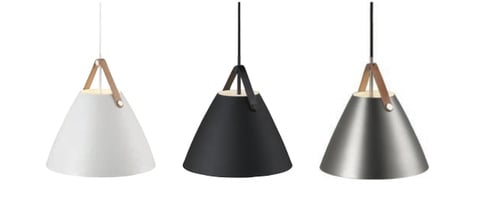 ¡Esta lámpara colgante es muy escandinava! ¡Su diseño sencillo de pantallas de metal, combinado con las correas de cuero, hace que quede genial en un interior moderno!