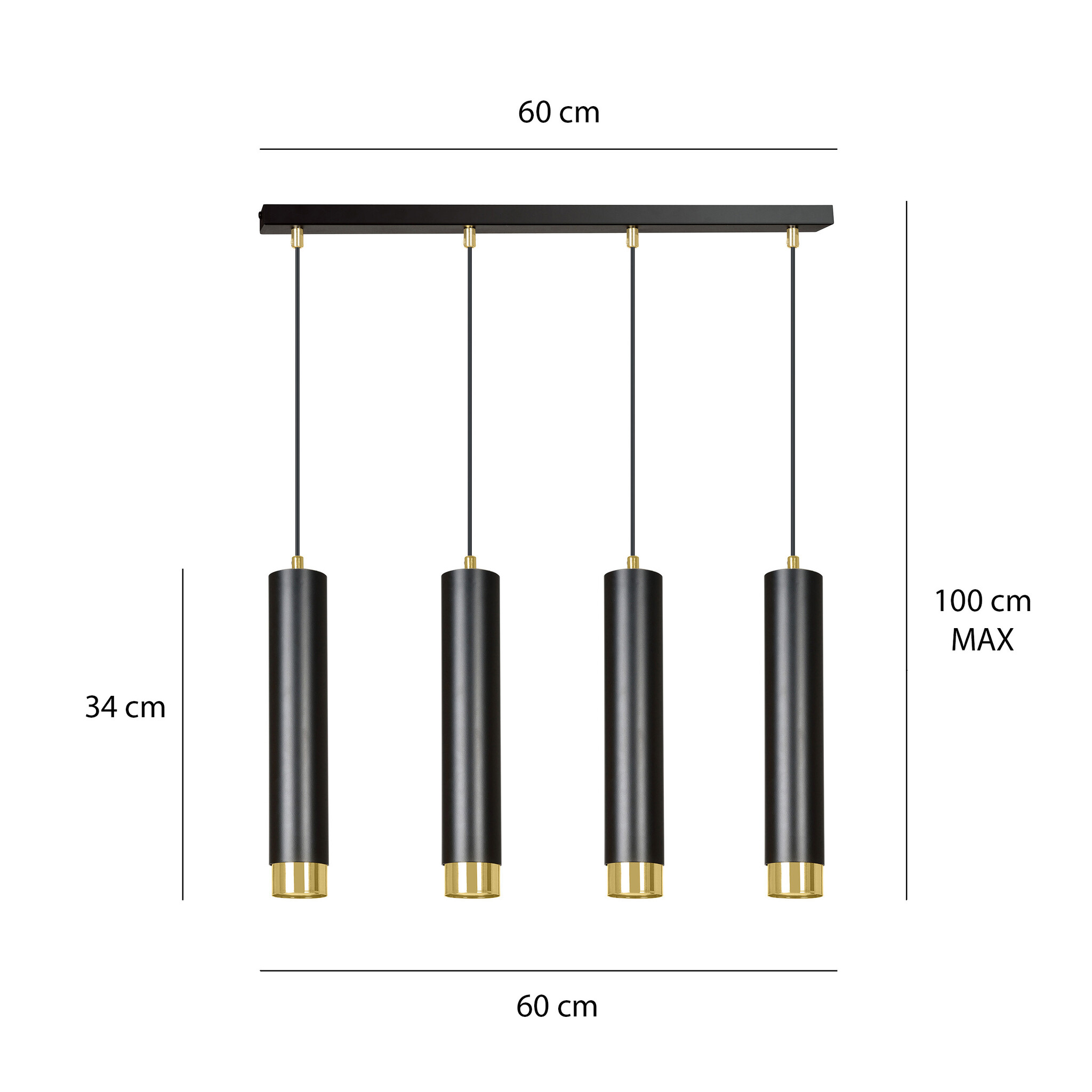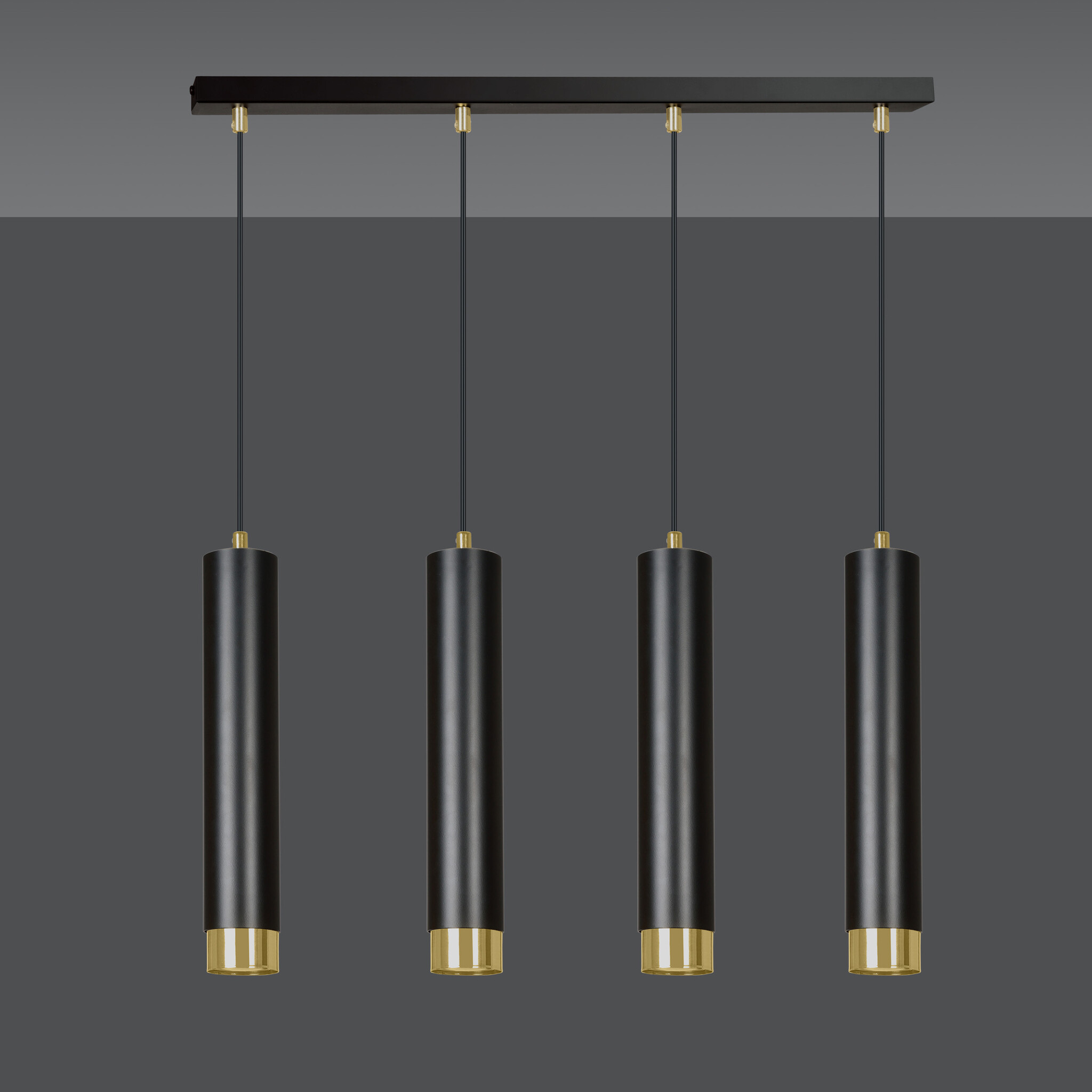 Lámpara colgante Gavle 4L negra y dorada tubos GU10