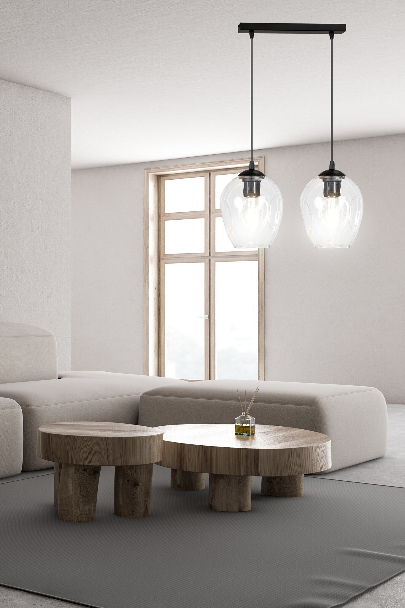 Lámpara colgante individual Nokia doble cristal transparente E27