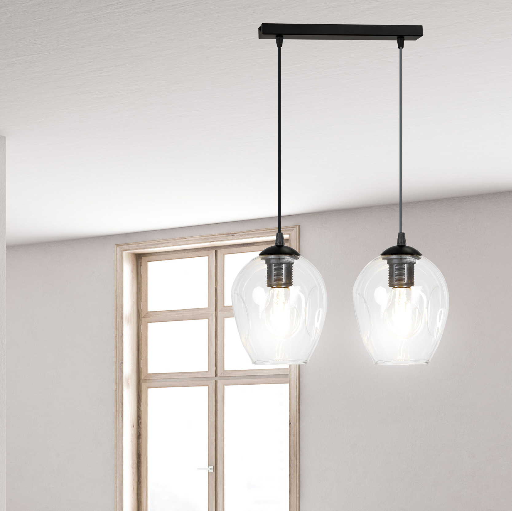 Especificaciones Lámpara colgante individual doble cristal transparente Nokia E27:
