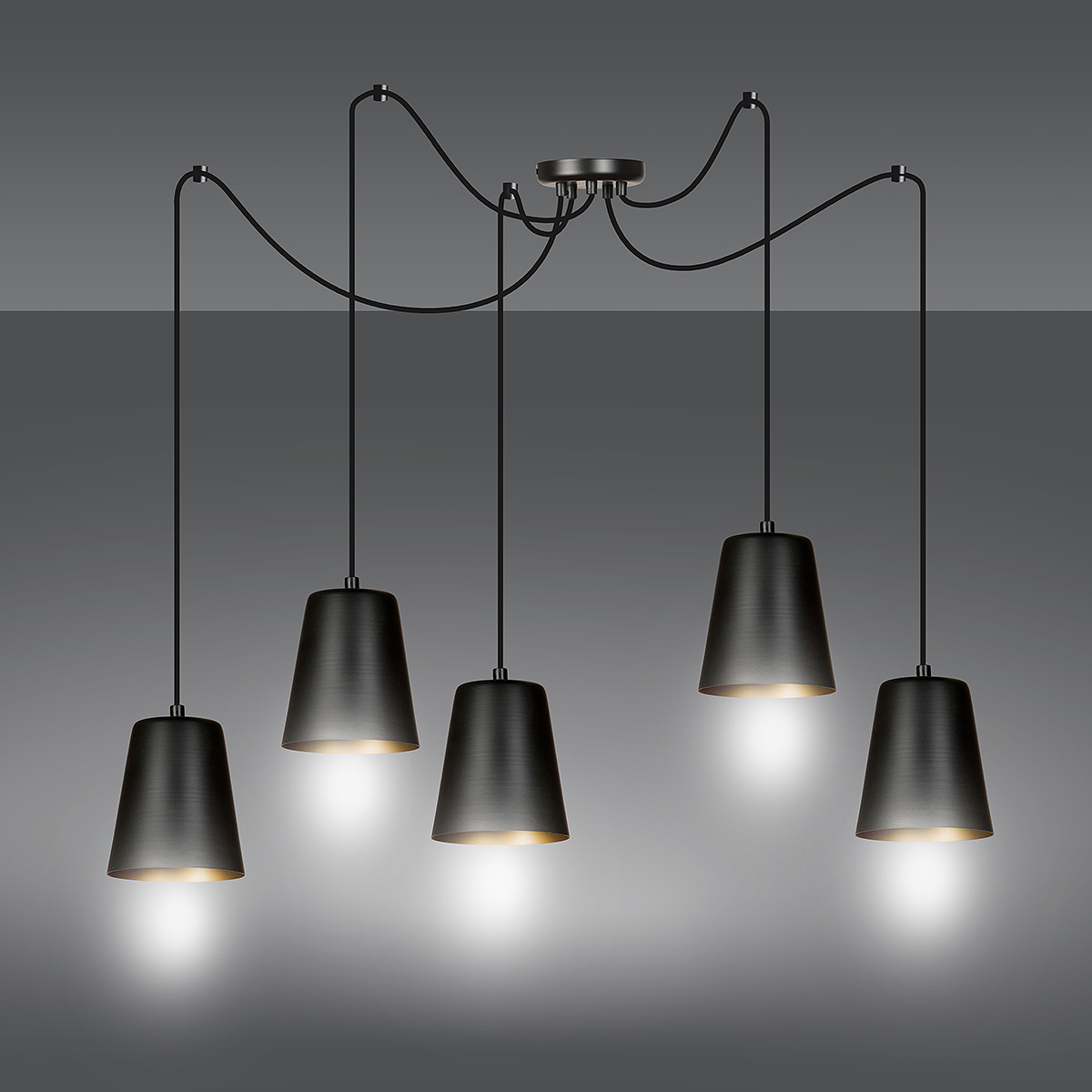 Lámpara colgante Jonkoping 5L oro y negro 5x E27