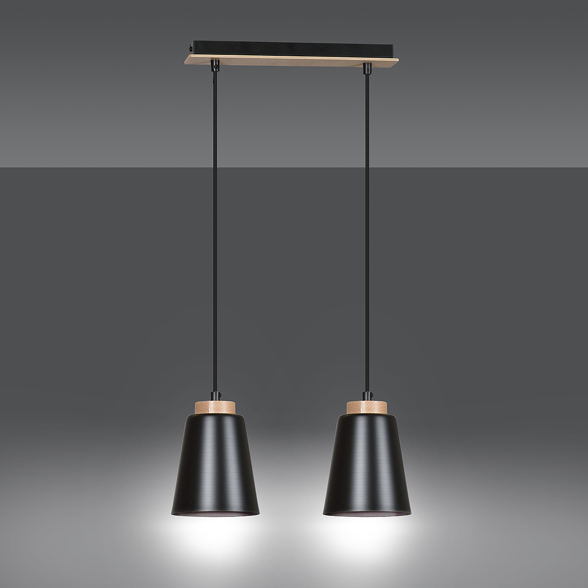 Lámpara colgante Kaarina 2L negra con madera 2x E27