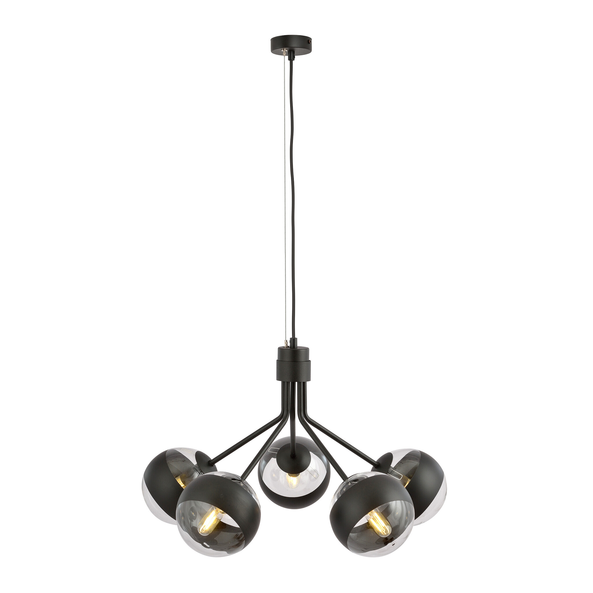 Lámpara colgante Kolding 5 lámparas negra rayada bolas cristal E14
