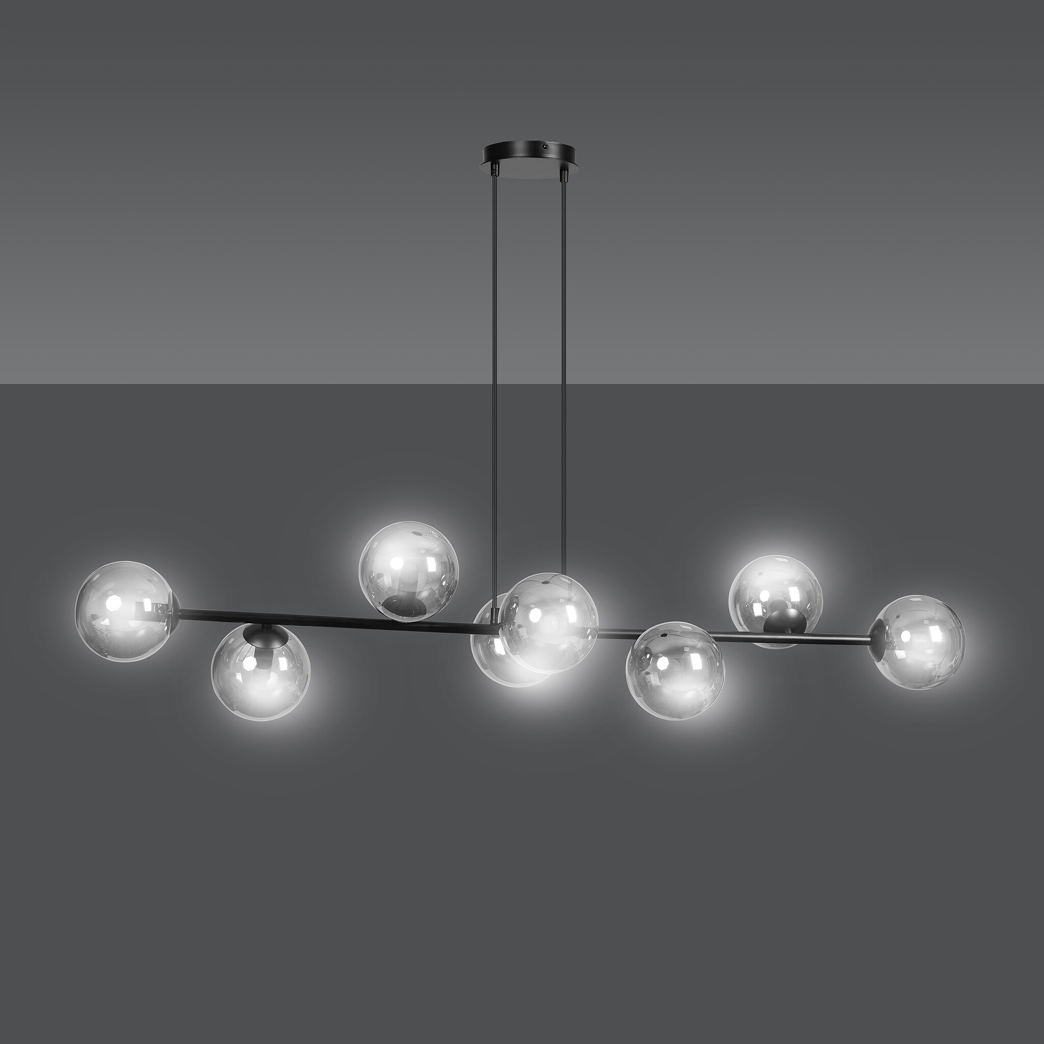 Lámpara colgante larga Herlev negra con 8 bombillas ahumada negra E14