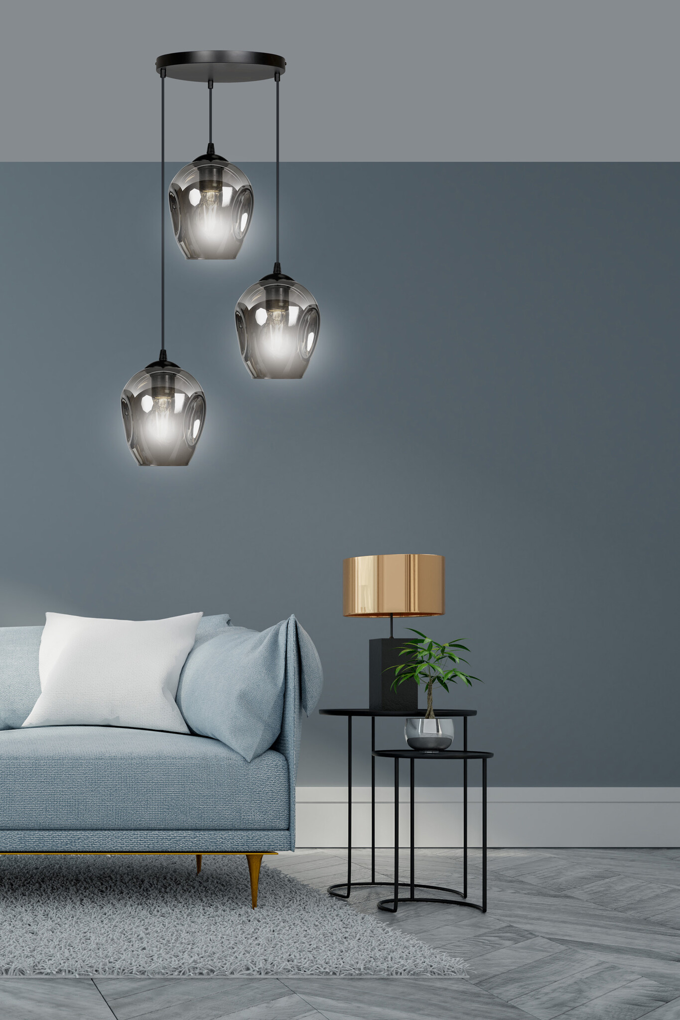Lámpara colgante Nokia redonda 3L cristal ahumado 3x E27
