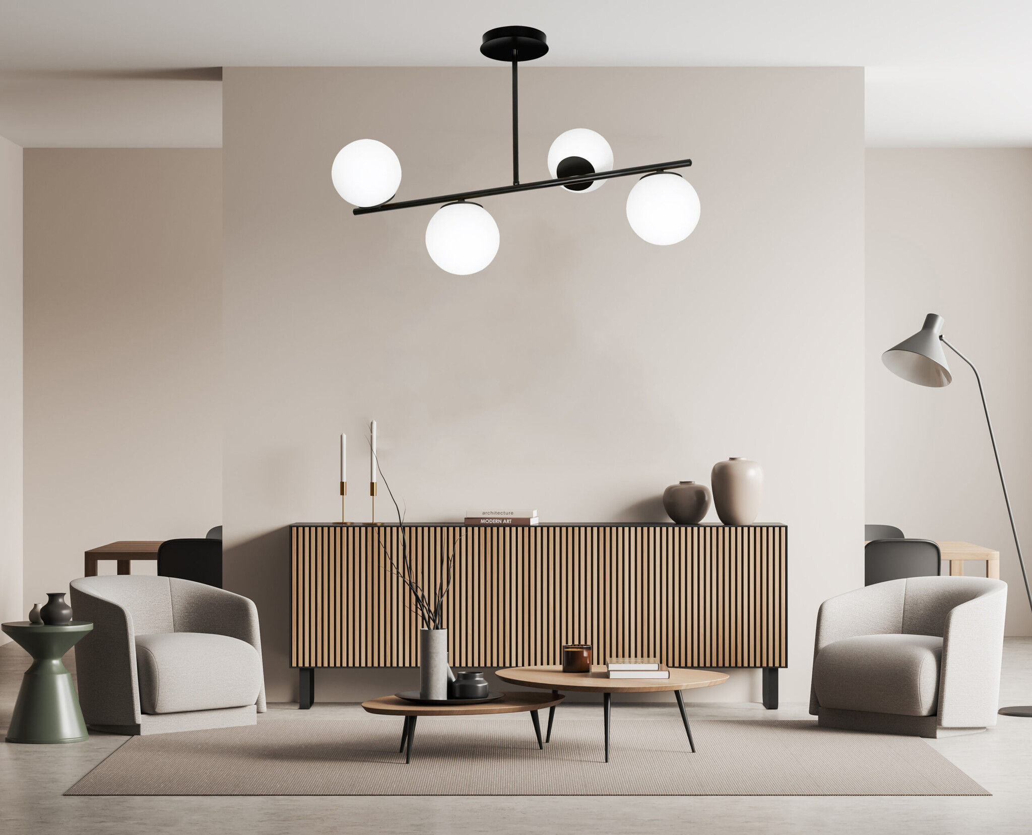 Lámpara colgante Odder negra de 4 lámparas con bombillas blanco lechoso E14