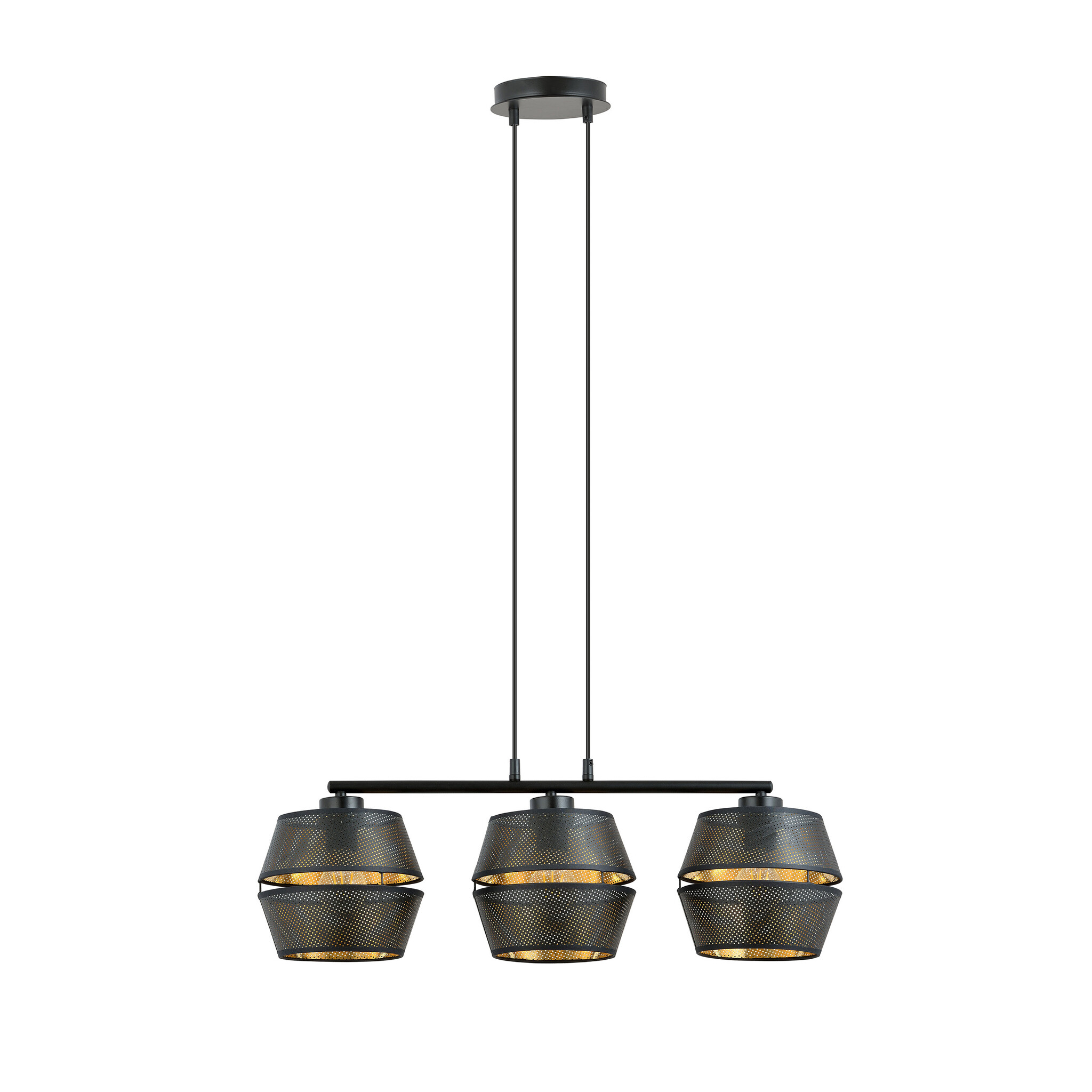 Lámpara colgante perforada 3x E27 completamente negra con interior dorado