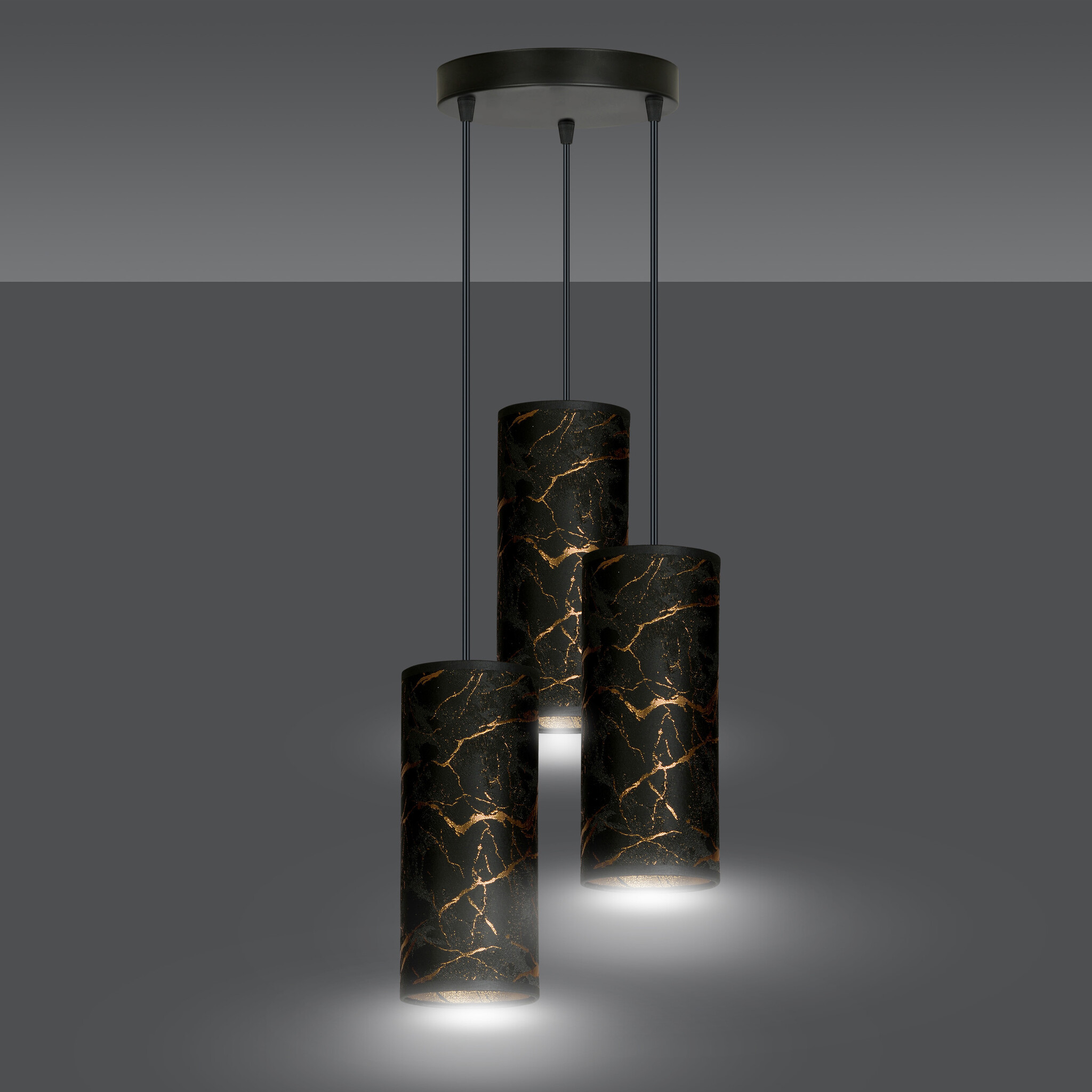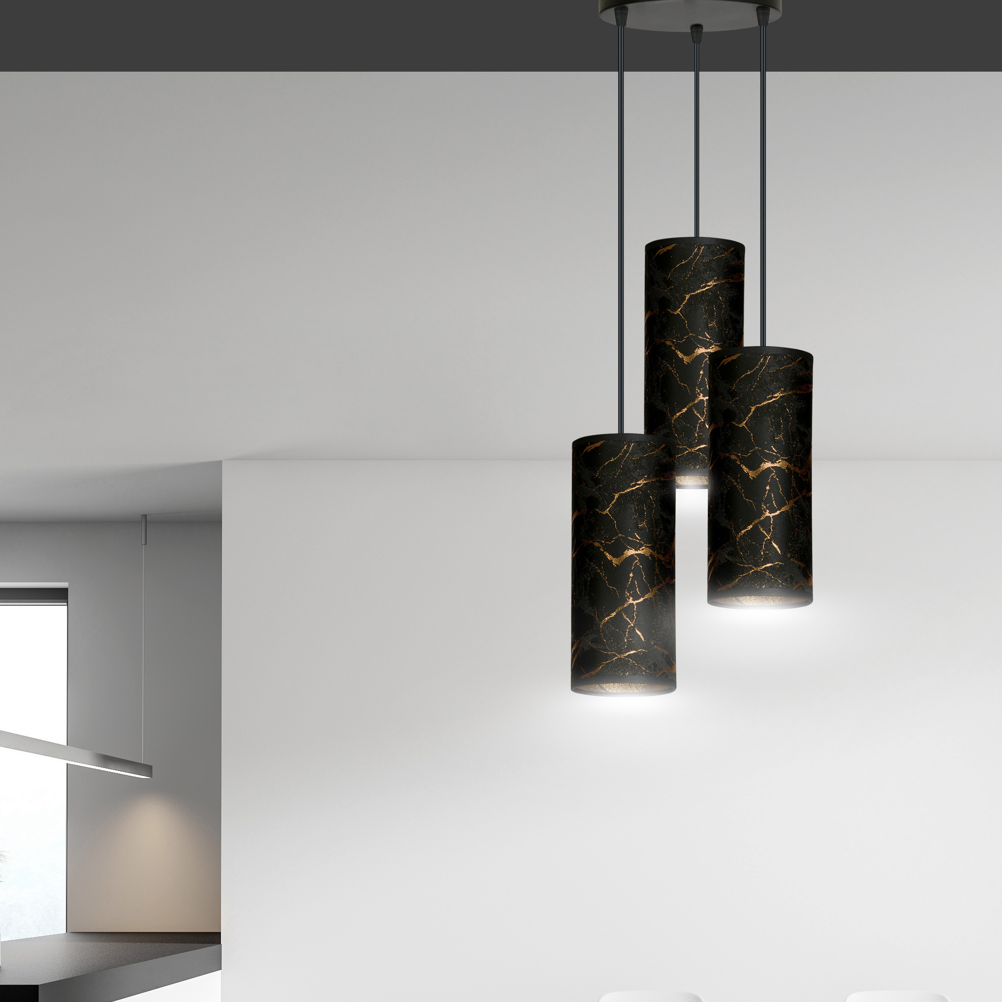 Lámpara colgante redonda Fakse 3 tubos mármol negro 3x E27