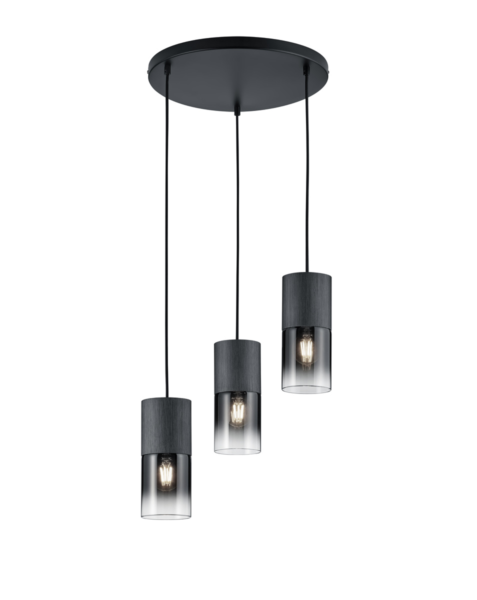 Lámpara colgante smokey redonda 3xE27 negro mate