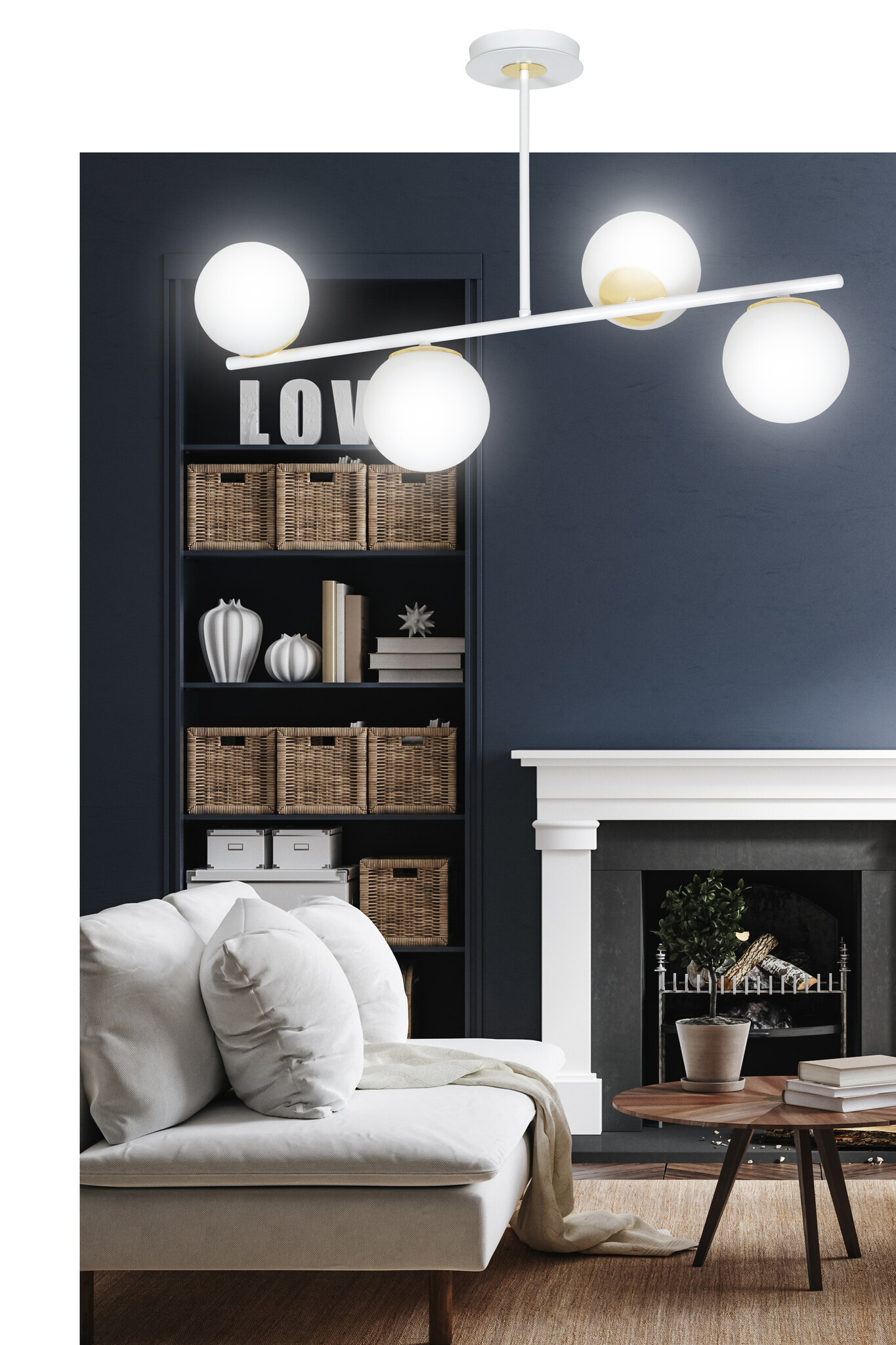 Lámpara colgante Struer de 4 lámparas dorada y blanca con bombillas blanco lechoso E14