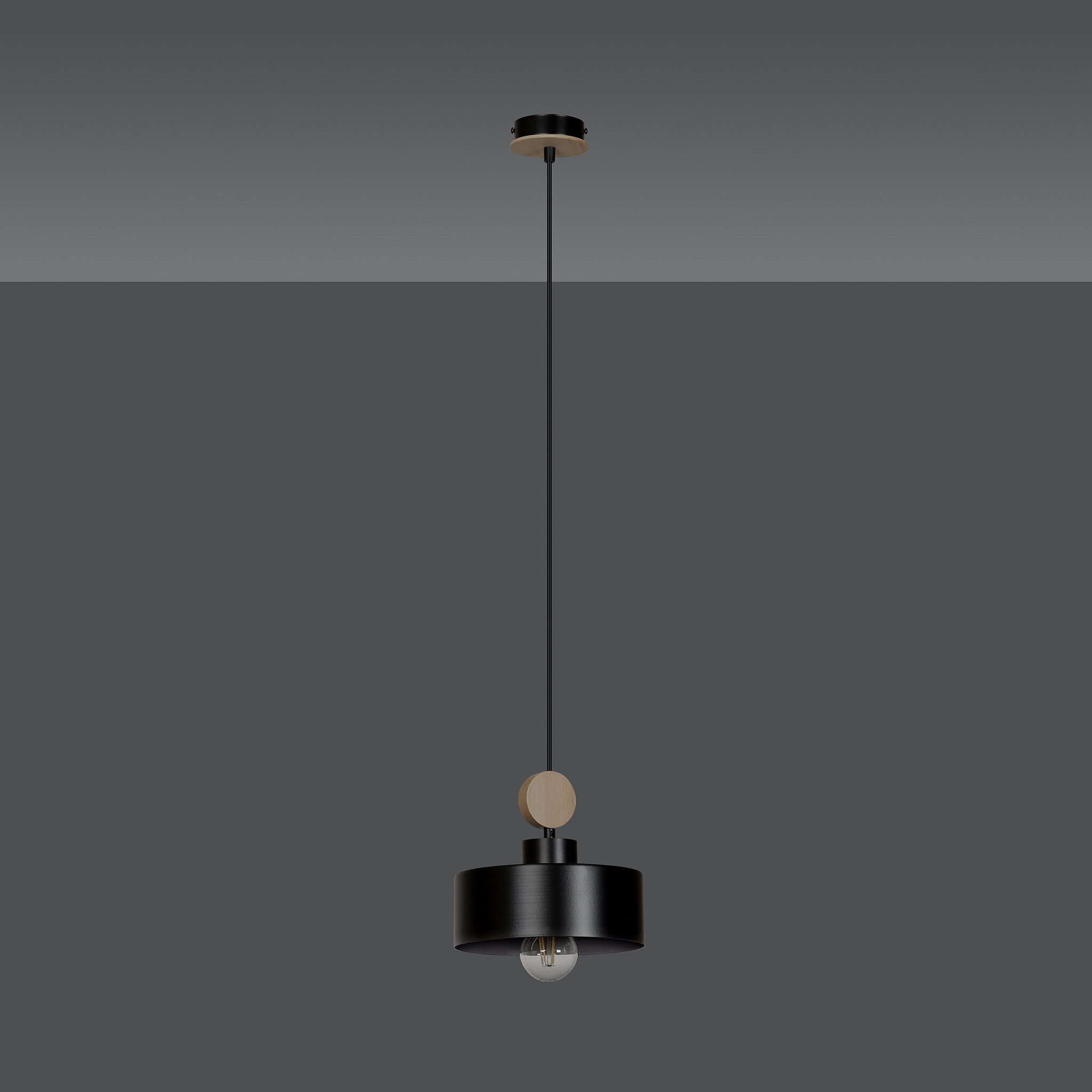 Lámpara colgante Vihti 1L negra con detalles en madera