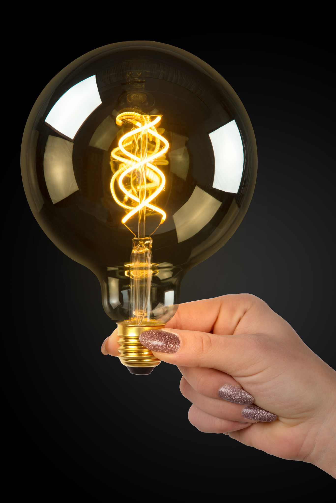 ¿Buscas una bonita lámpara LED de filamento? Esta lámpara de bola de color ámbar con un diámetro de 125 mm está equipada con un filamento en espiral y un cristal de color dorado. La bombilla ahumada o de humo está equipada con el mismo LED en espiral de 2200 Kelvin y un cristal ahumado a su alrededor. Llaman la atención en sí mismos, ¿a qué estás esperando?