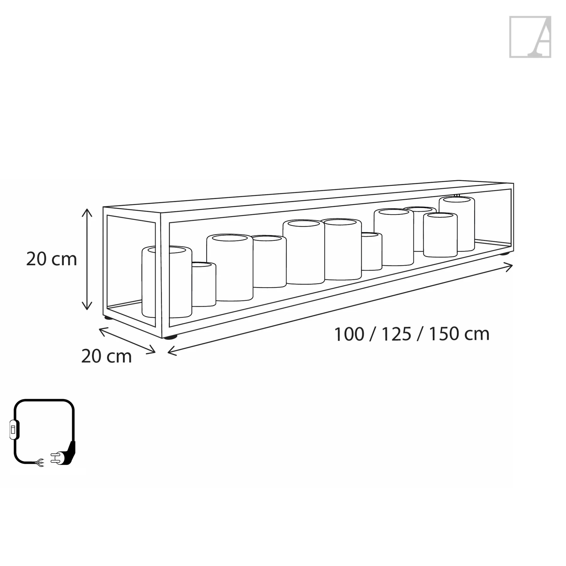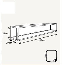 Las dimensiones son: alto 20 cm, fondo 20 cm, ancho 100 cm.