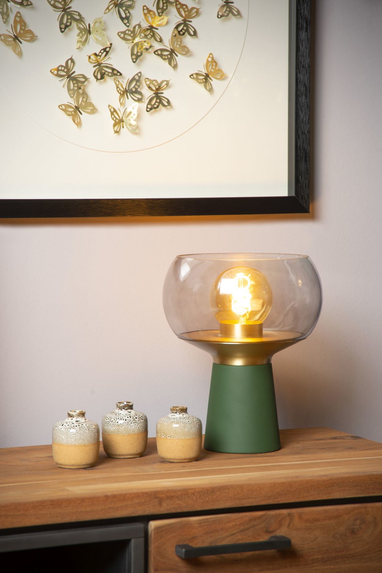 Lámpara de mesa verde E27 con diseño en latón y cristal